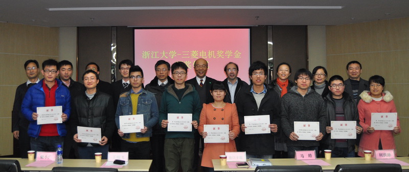 杜丽首先宣读了获得2013届三菱电机奖学金的学生名单,本年度mg4355线路检查官网共有3位博士生和6位硕士生获奖。三菱电机代表团与电气学院领导共同为同学们颁发了三菱电机奖学金证书,并合影留念。