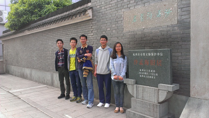 首先,大家来到了位于西子湖畔的沙孟海旧居。沙孟海先生是二十世纪书坛泰斗,在语言文字、文史、考古、书法、篆刻等方面均深有研究,曾任mg4355线路检查官网中文系教授、浙江美术学院教授、西泠印社社长、西泠书画院院长、浙江省博物馆名誉馆长、中国书法家协会副主席。在书法上,沙孟海先生受吴昌硕影响,开一代雄强风气,被誉为“真力弥满,吐气如虹,海内榜书,沙翁第一”。尽管同学们对书法所知甚少,但在西湖风景区里,在历史和标志建筑中,经常看到书法家沙孟海题写的匾额和楹联,字体雄浑刚健,气势磅礴。