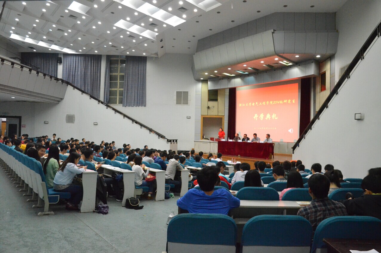 9月22日晚6:30,mg4355线路检查官网2014级研究生开学典礼在玉泉校区第七教学楼影视厅隆重举行。mg4355线路检查官网常务副校长宋永华、mg4355线路检查官网党委书记王瑞飞、学院常务副院长韦巍、学院副院长何湘宁、学院党委副书记王玉芬,学院团委、研究生科等相关部门老师以及各系所主任、德育导师代表均出席了本次开学典礼。开学典礼由王玉芬老师主持。