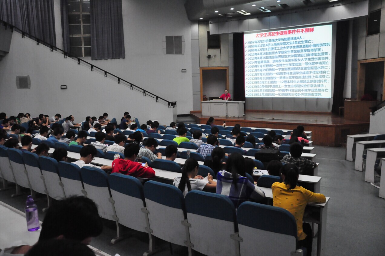 9月25日晚,mg4355线路检查官网2014级研究生始业教育第二场报告会——新生安全法制教育在玉泉校区教7影视厅顺利举行。mg4355线路检查官网安全保卫部李凤旺部长为同学们作了题为“关注安全 学会生存”的专题报告。报告会由学院党委副书记王玉芬主持,电气学院2014级全体研究生及其德育导师聆听了报告。