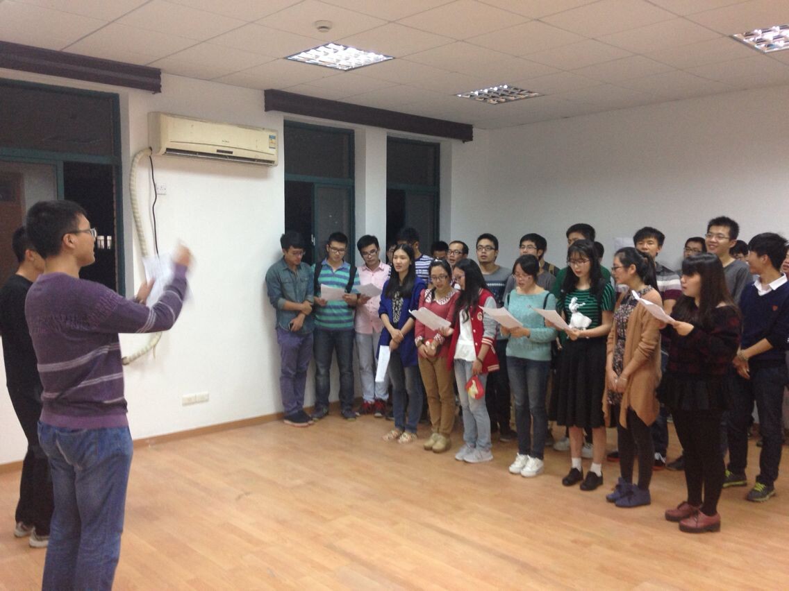 在之前的练习中,同学们已经熟悉了《mg4355线路检查官网校歌》和自选歌曲《相信我们会创造奇迹》的旋律和歌词,因此,此次训练主要以分声部强化训练为主。晚上8时整,同学们在彭勃和陈乾同学的细心指导、指挥下开始了此次的合唱训练。一开始,彭勃同学根据音色将所有同学分为高、低两个声部,并针对歌曲中齐唱、轮唱、合唱等分别进行了指导,并以专业的手法教导大家如何进行演唱。接下来,大家开始进行歌曲的完整演唱。在演唱校歌时,彭勃同学提出了许多建议,如用轻快跳跃的方式演唱第二段中的部分内容、在歌曲结尾部分升高音调进行强调等,经过这些细节上的处理,演唱效果有了很大的提升。此后,大家开始练习自选歌曲《相信我们会创造奇迹》,这首歌曲表达对未来的无限憧憬与信心,也包含了集体的温暖与凝聚。为了能够完整地传达出这些感情,彭勃同学为这首歌加入了朗诵、乐器演奏、哼唱等表现形式,并对歌曲进行了重新编排。大家按照指导进行了演唱,经过几次尝试与修正,整体的表演基本达到了预期的效果。