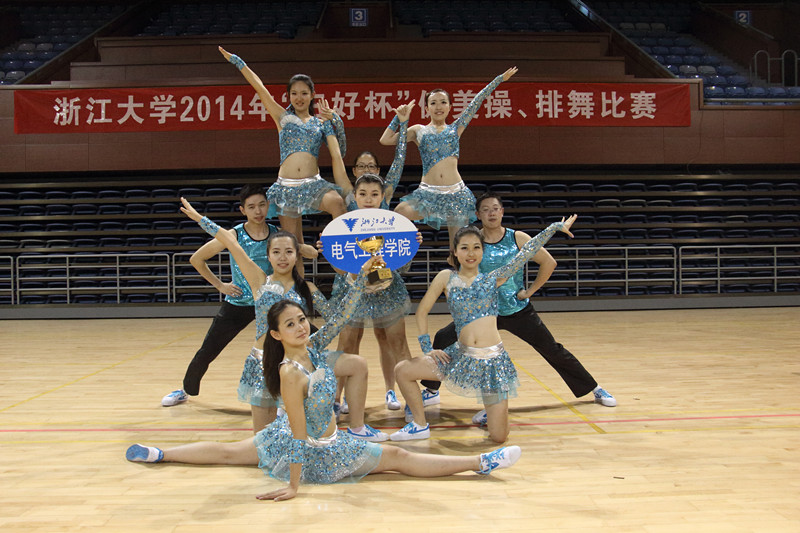 为推动学校群众性体育活动的开展,丰富校园体育文化生活,10月18日下午,由mg4355线路检查官网公共体育与艺术部主办的mg4355线路检查官网2014年“三好杯”健美操、排舞比赛在mg4355线路检查官网紫金港体育馆举行。电气学院由7位女生和2位男生组成的健美操队伍参加比赛。
