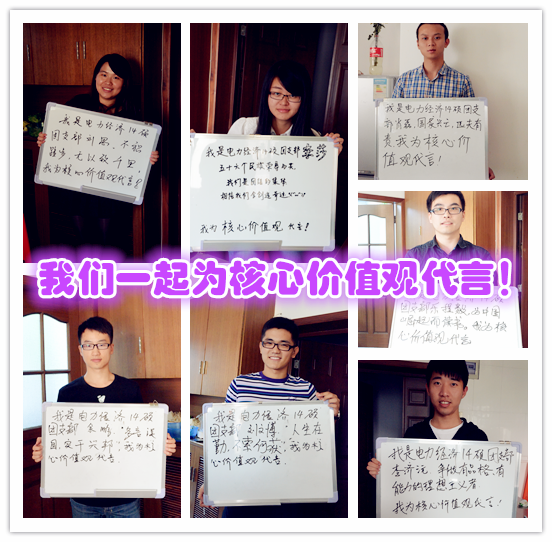 10月26日上午,电力经济14硕团支部的同学开展了主题为“践行核心价值观 建设活力团支部 放飞青春中国梦”的团日活动。同学们学习讨论了先进榜样人物,在晴朗的秋日里共谈核心价值观,放飞各自的中国梦。