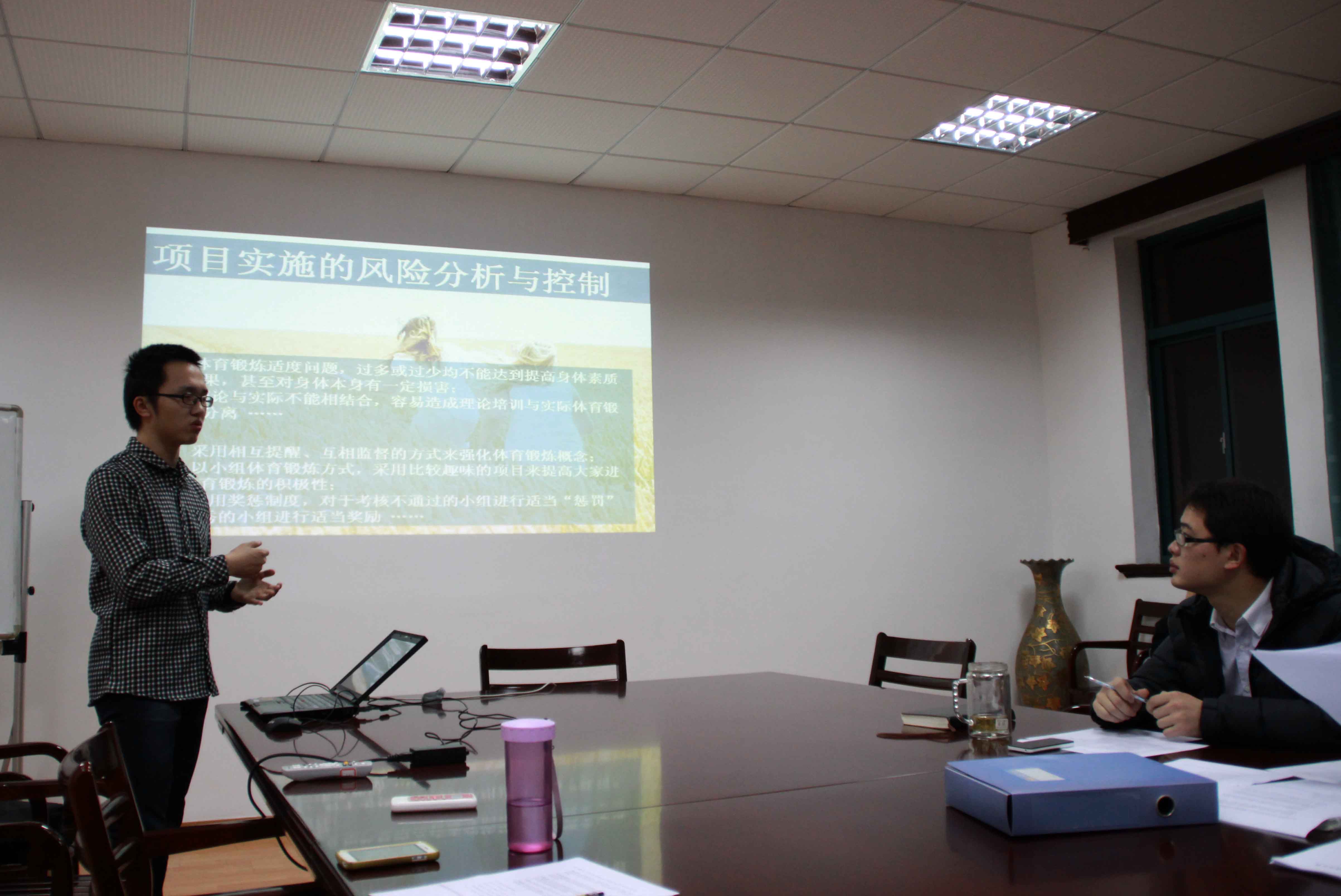 答辩会准时开始,各项目组成员按规定顺序依次上台展示,重点介绍了项目的意义、实施方案、风险控制和预期成果评估等方面,展示形式以ppt为主。本次SQTP立项团队的项目选材十分新颖丰富,既有文化气息浓郁的书法艺术普及,也有充满学院特色的寝室电器维修;既有注重沟通交流水平的口才提升,也有关注大学生身体素质的体能训练……五分钟的精彩展示之后,评委老师就项目的整体框架和具体实施细节进行了点评并提出了宝贵的意见,就项目实施方案的可行性等方面提出了一些问题,各组同学认真作答,会议秩序有条不紊。