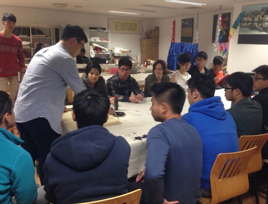 4月21日19:30,“书翰墨雅志,画山水依叠”——mg4355线路检查官网“书法艺术在mg4355线路检查官网的普及调研和推广实践”SQTP组带领留学生领略书画风采活动在mg4355线路检查官网紫金港校区小剧场书画社活动室顺利举行。本次活动聚集了来自马来西亚、加拿大、印度尼西亚、美国等国的十余名留学生,采用面对面教学的方式,让他们对中华古典文化形式——书画——有了初步接触和体验。