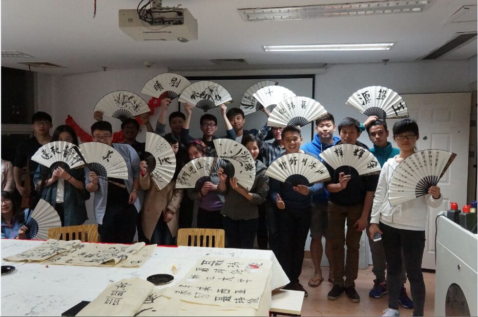 活动的高潮是在工作人员韩畅和薛爽为留学生们分发了空白的扇面之后,经过联系小有进步的留学生们在空白扇面上写上了自己练习好的汉字,并在指导下加以适当图画进行点缀,做出了一幅幅独一无二的、别致的纪念品。时间飞逝,活动结束后留学生们带着自己的作品满意而依依不舍地离开了活动室,同时也表示在今后也会继续练习书法,这让我们小组成员都感到欣慰和感动。