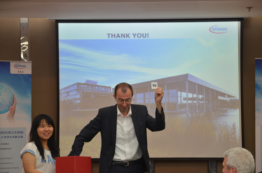 随后,英飞凌全球人力资源副总裁全球大学计划总负责人Mr. Ralf Memmel带来了“CareerENG @ Infineon –Your Personal Growth in a Global Semiconductor Company”主题演讲,并解答了同学们自己对英飞凌公司和自己职业生涯规划的问题,然后Mr. Rainer Schmidt在抽奖环节抽出了一些幸运观众。
