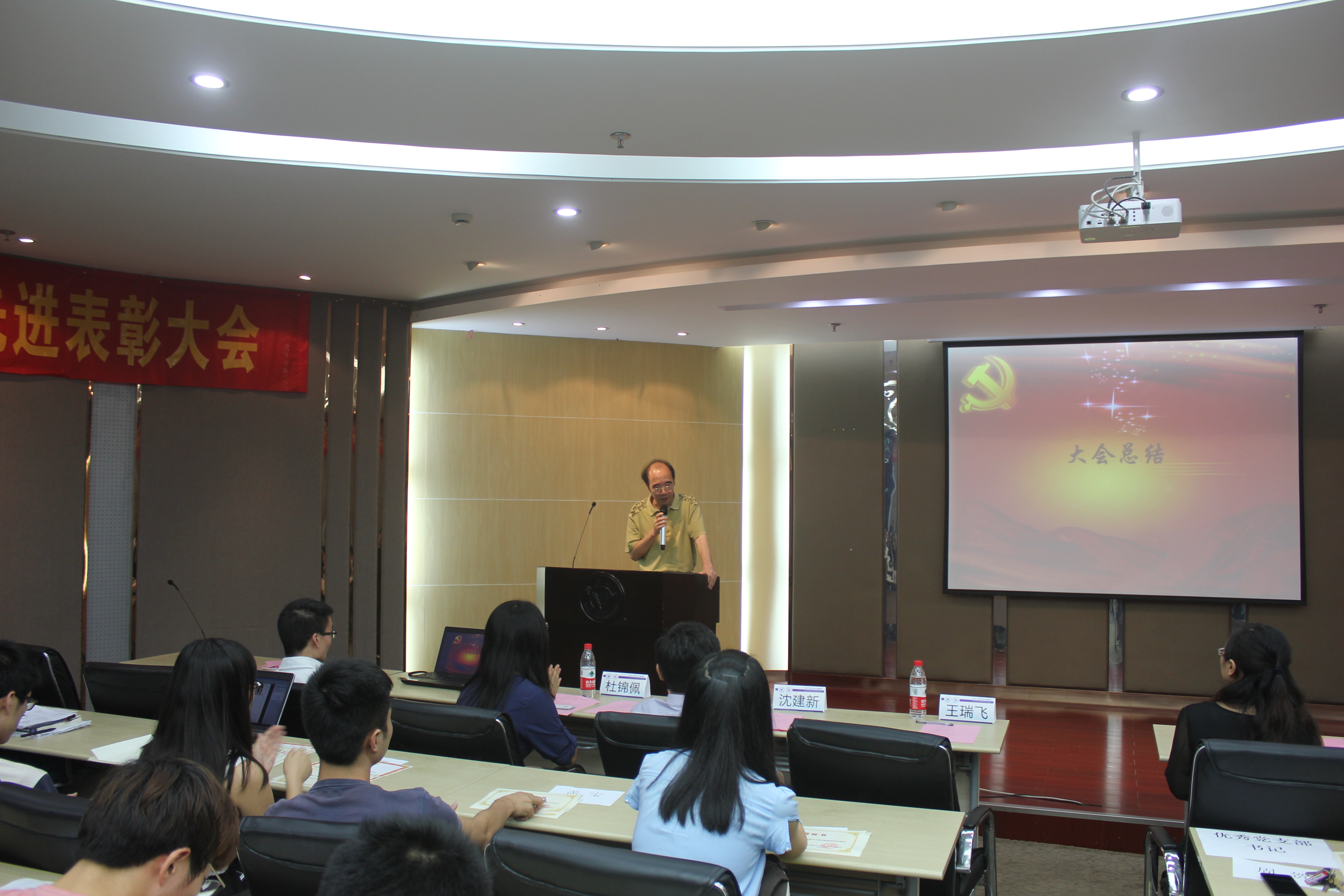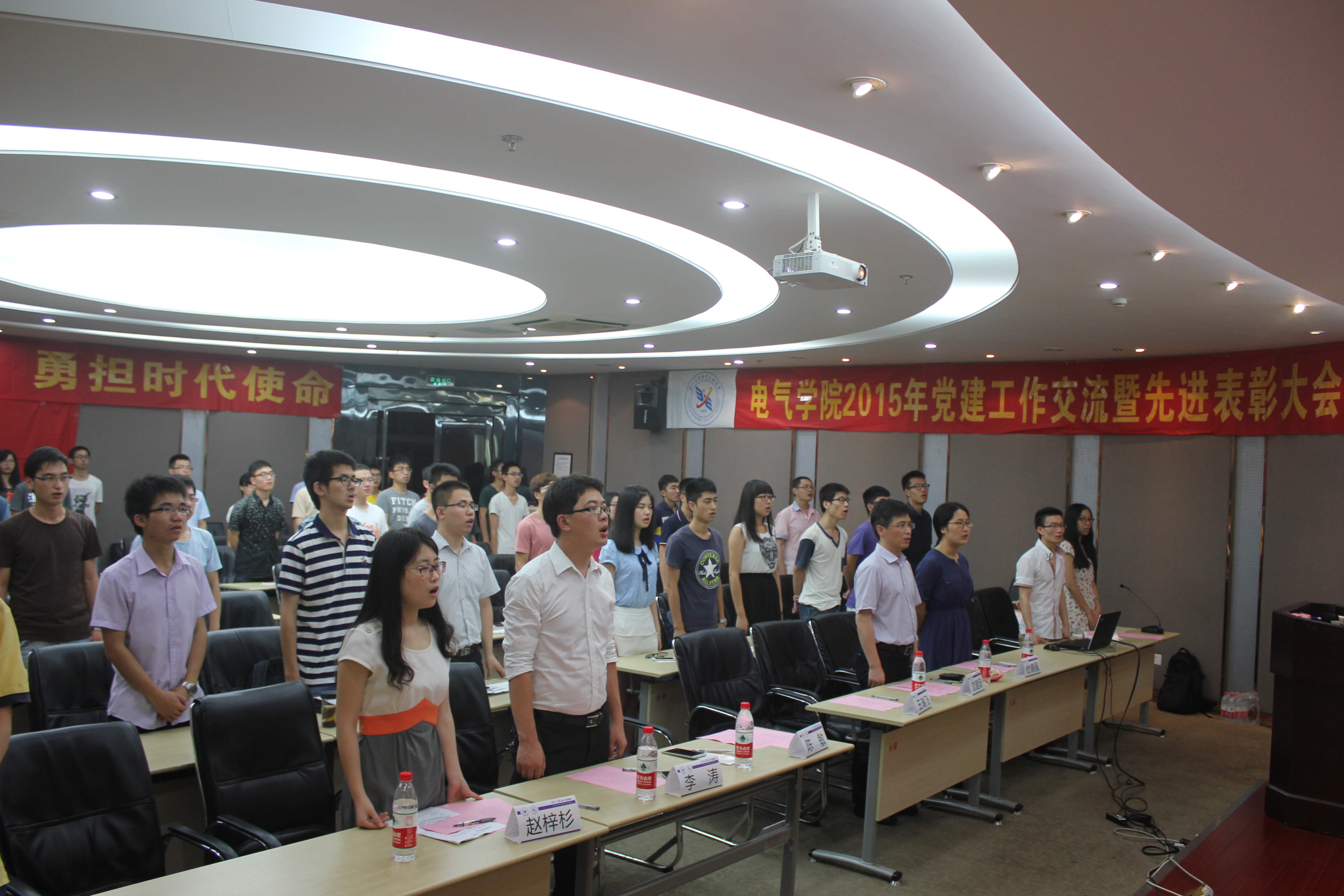 在中国共产党94华诞之际,2015年6月23日晚,mg4355线路检查官网在玉泉校区永谦第一报告厅隆重召开了2015年学生党建工作交流暨先进表彰大会,巩固扩大学生党建工作成果,充分挖掘学生党建工作中的先进典型,进一步发挥榜样引领作用。学院党委书记王瑞飞,学院党委委员、院长助理沈建新,各党总支委员,各支部书记,优秀学生共产党员,新党员,毕业生党员等代表参加了表彰大会。大会由学院党委委员陈敏主持。