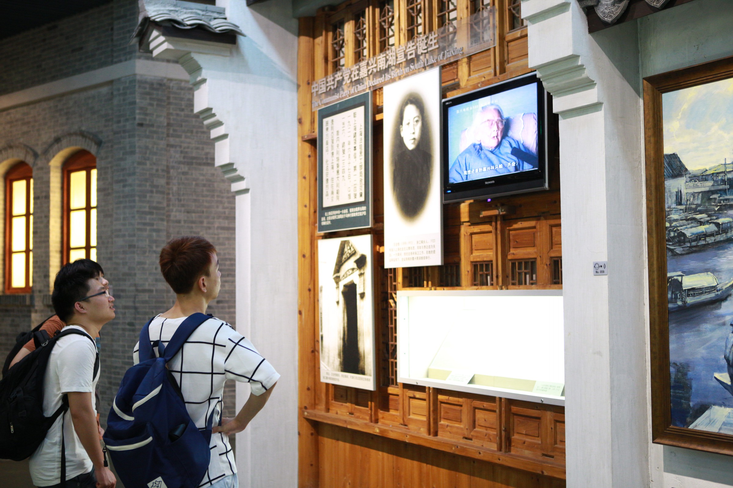 之后,一行人又来到了位于浙江嘉兴的南湖革命纪念馆,继续着一大的探访足迹。在大厅中,有一尊红船的立体雕塑。正是这艘船,让一大得以完整召开。