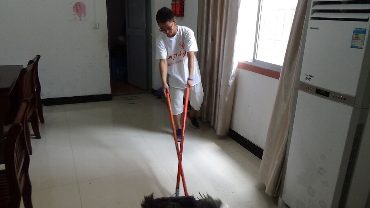 8月7日是“春泥”课堂正式开课的日子。早上七点,实践队员们便走出宿舍,前往文化礼堂布置场地。扫地、拖地、擦白板、摆桌子……在所有小朋友来之前将场地打扫、整理干净。当孩子们开始陆陆续续到达时,映入他们眼前的,已经是一个干净敞亮的礼堂了。