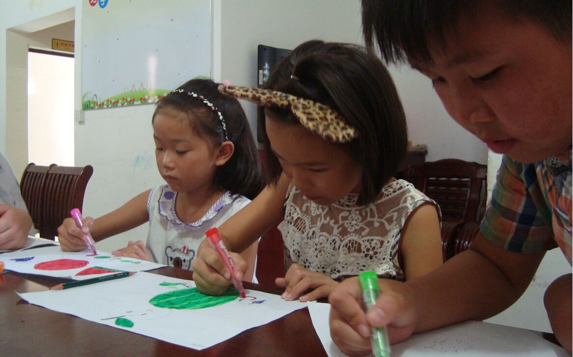 8点30分,开班仪式正式举行。仪式分为实践队员介绍、分班结果公布、课程安排公布以及合影留念,队长王慧如主持开班仪式,60余名学员按照年级高地分为AB两个班级。上午十点,“春泥”课堂正式开课。第一天孩子们的课程是美术课和音乐课,大小班轮流进行课程。美术课上,一张小白纸,孩子们一笔一划、一抹一染描出心中的最爱:最爱的水果,最爱的动物,最爱的人……音乐课上,孩子们用歌声表达心情,开心时歌声清脆嘹亮,落寞时歌声细微低沉,一首小虎队的《爱》,他们用歌声与手语表达出对老师们的喜欢。