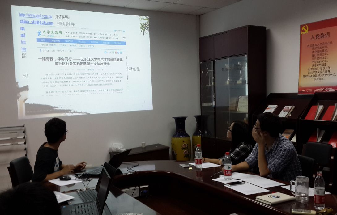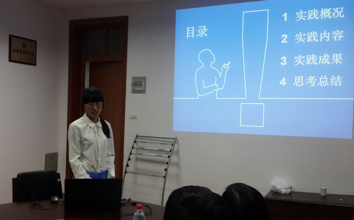 为检验实践成果,学院团委于9月17日晚上,在教二422举行了社会实践成果展示交流会,学院团委书记陈敏老师、团委副书记李涛老师及3名学生干部担任了展示的评审工作。