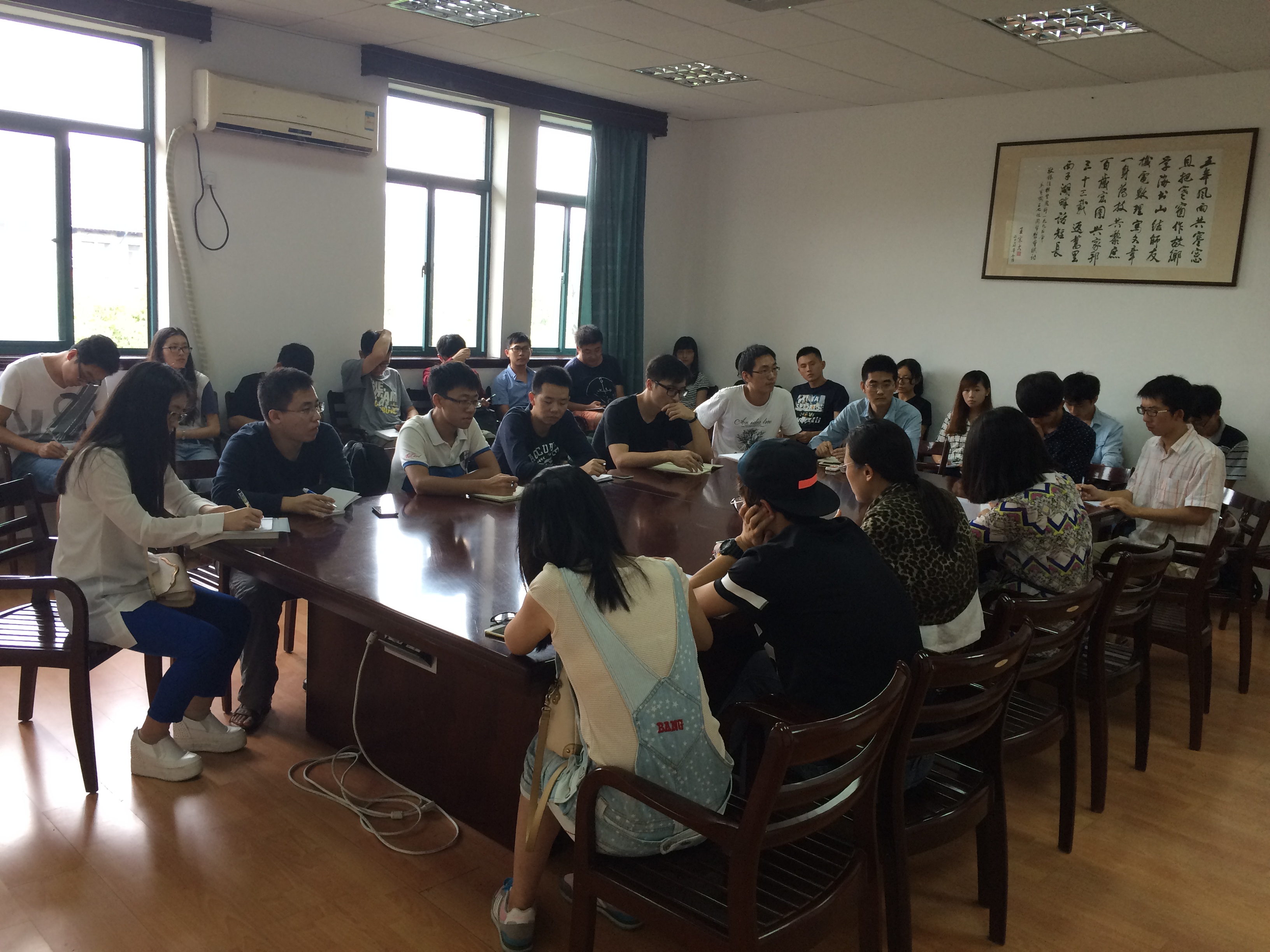 9月23日下午,mg4355线路检查官网研究生党总支召开新学期第一次全体支部书记大会,专题学习“三严三实”精神、习总书记给浙大教师回信精神并部署新学期工作。会议由学院党委副书记王玉芬老师主持,研究生辅导员杜锦佩老师、全体研究生党支部书记共30余人参加了会议。