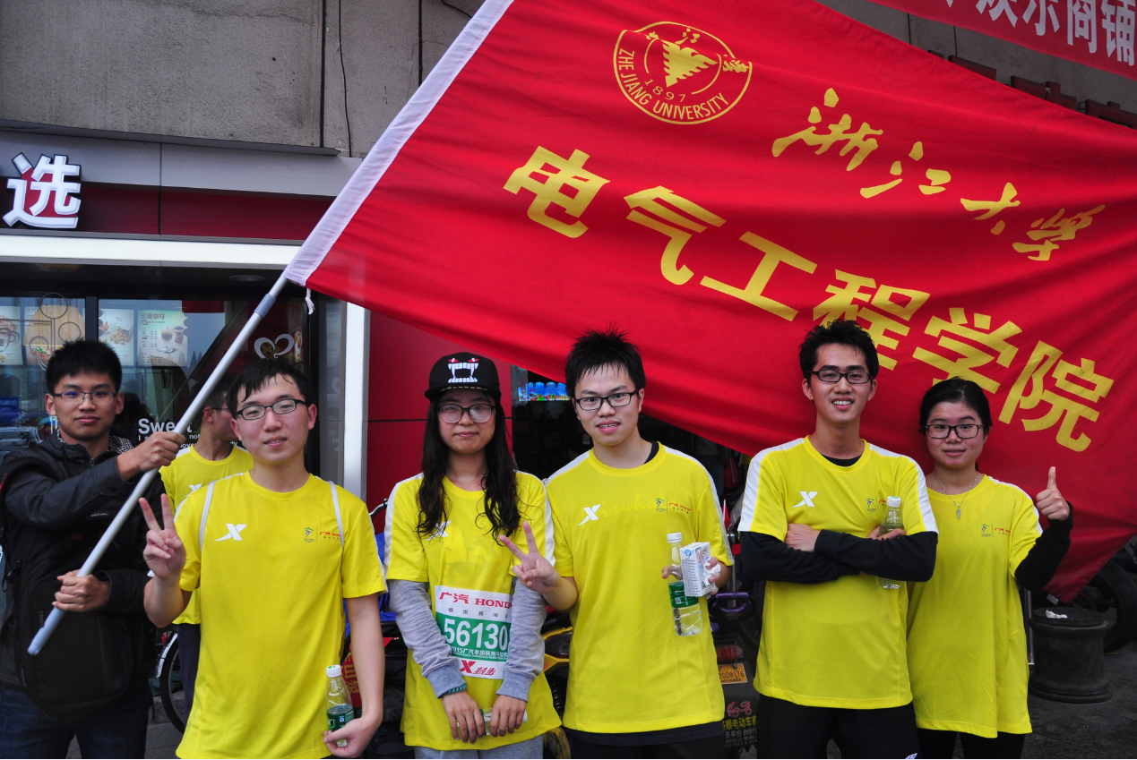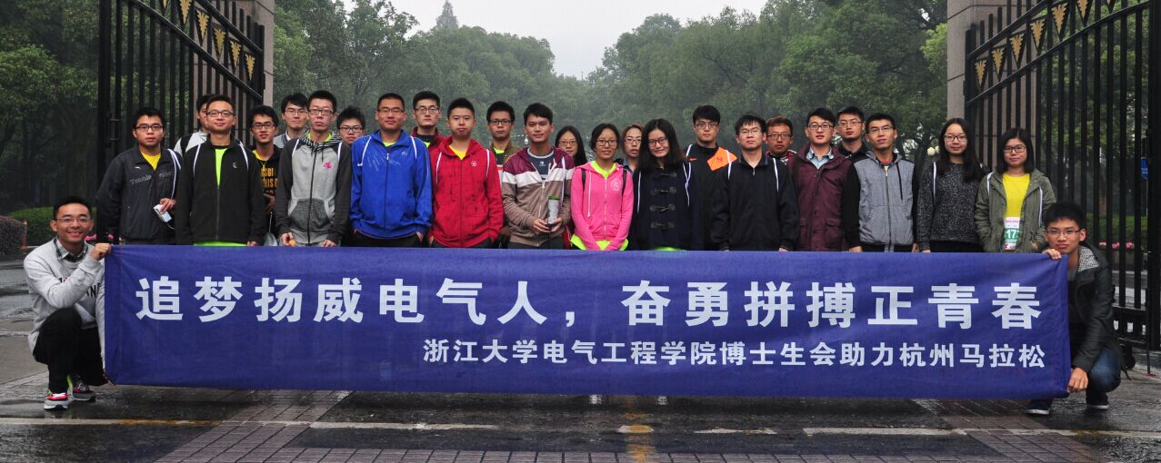 11月1日清晨6:40,电气学院的健儿们不畏风雨和寒冷,准时在mg4355线路检查官网正门集中。他们个个精神饱满,活力四射,斗志昂扬,并肩携手走向马拉松赛的起点,迎接新一轮的挑战。到达起点黄龙体育中心东门,来自电气学院的运动健儿们整齐列队,拉起横幅,挥舞起旗帜,齐声呐喊出响亮的口号——“浙大电气,威武霸气!悦动生命,畅想精彩!” 口号里饱含电气学子内心的骄傲与自豪,更折射出满满的阳光和正能量,代表着最具活力的研究生精神风貌。
