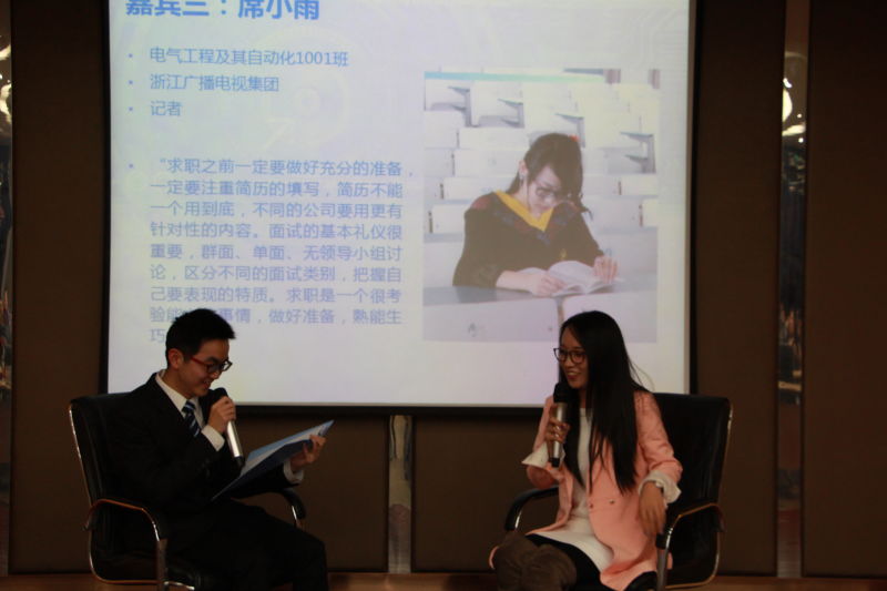 作为唯一的学姐,也是唯一跳出电气圈进行择业的,小雨学姐的出场吸晴无数。小雨学姐目前是一名记者,谈到为什么跨专业择业,她是这样说的:“当初选择学电气也是随大流吧,深入学习之后发现自己并不适合,我不想用自己的短板去和别人的优势pk”。谈到自己现在从事的工作,学姐很是欣喜:“我的工作给我提供了机会去接触各式各样的人,从社会底层人物到商业大佬,这让我的生活充满了新鲜感”。小雨学姐为大家提供了一条截然不同的择业思路,值得借鉴。