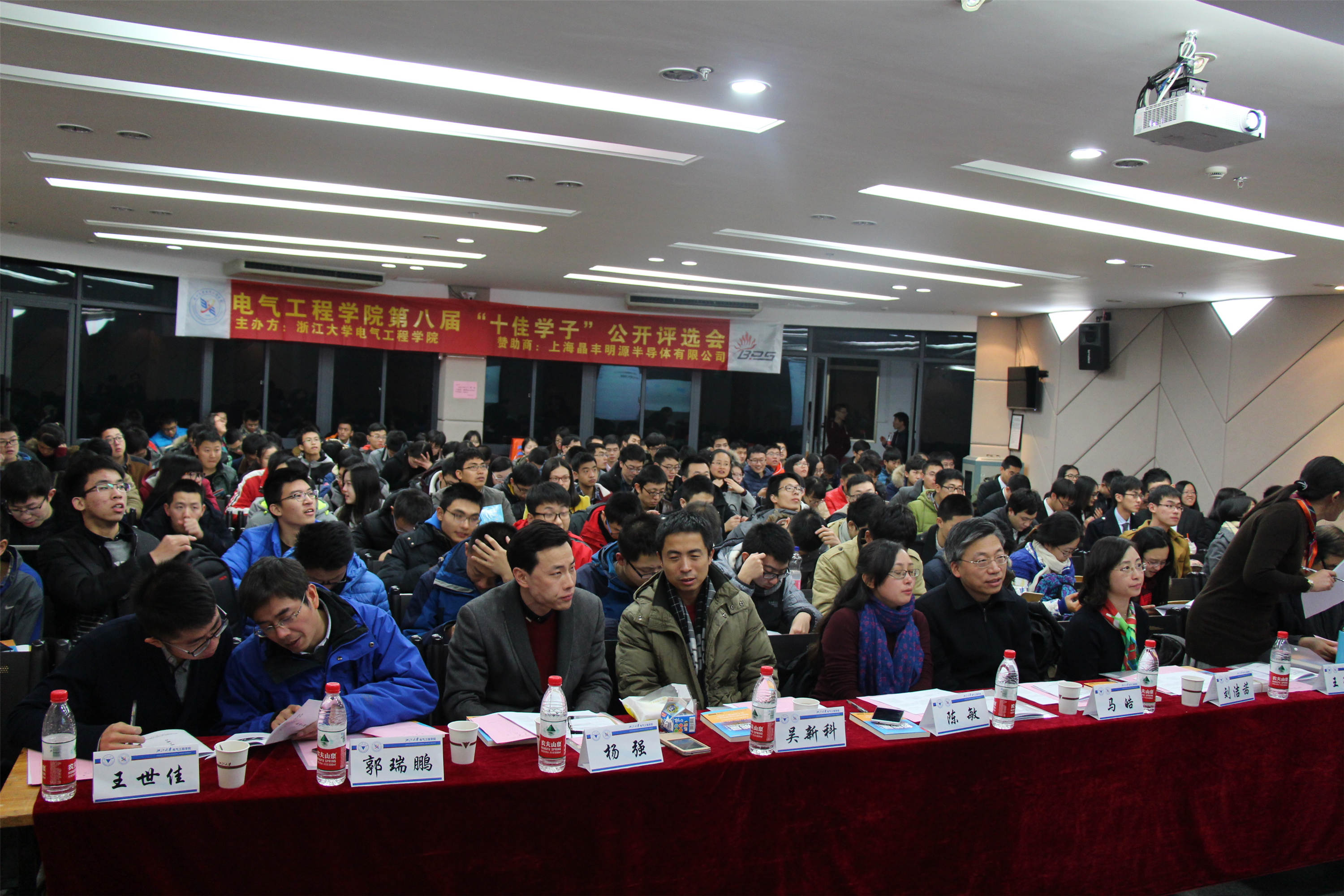 12月18日晚,mg4355线路检查官网第八届“十佳学子”答辩会在永谦剧场第二报告厅顺利举行。上海晶丰明源半导体有限公司联合创始人刘洁茜,mg4355线路检查官网副院长马皓,党委副书记王玉芬,团委书记陈敏,浙江省教学名师潘再平,心平杰出教学贡献奖获得者姚缨英,国家优秀青年科学基金获得者吴新科,优秀班主任杨强,电气1404班班主任郭瑞鹏出席了本次公开答辩会。此次答辩会还邀请到了博士生会主席王世佳同学、研究生会副主席刘思同学,学生会主席王琳同学以及150余位学生评委。