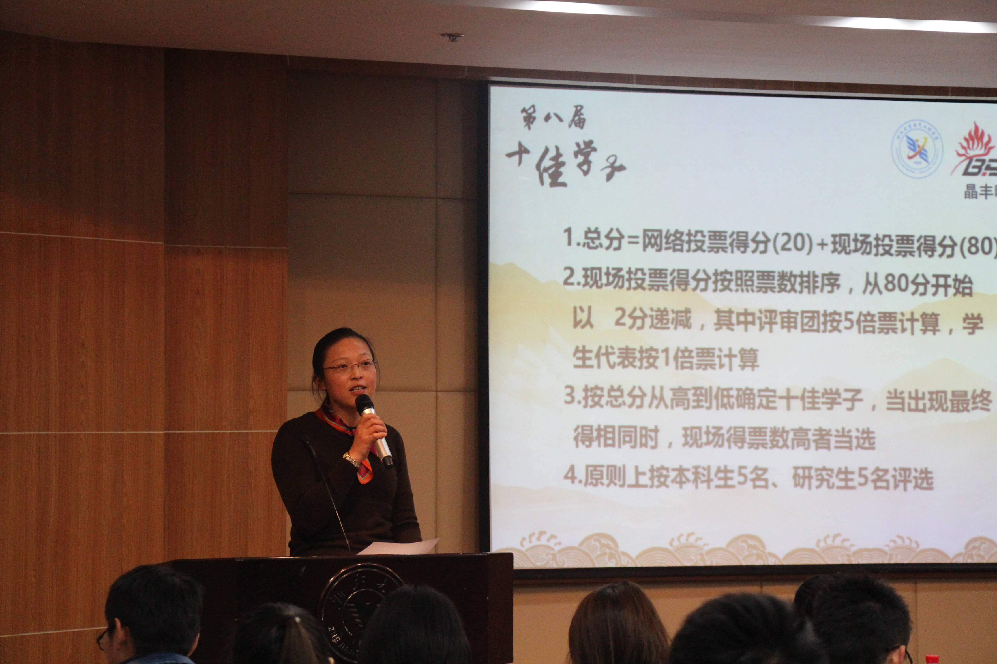 在紧张的统票环节结束后,王玉芬老师在万众期许中公布了电气学院第八届“十佳学子”评选结果及对应分数,此次评选活动最终圆满结束。在人才辈出的电气学院,这些候选人能脱颖而出,他们是电气人的骄傲,是电气精神的寄托!