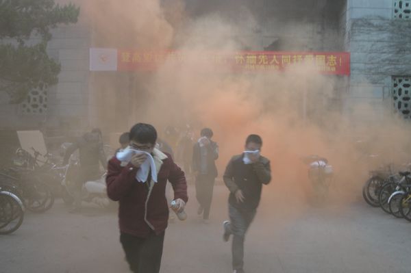 下午三时许,演练工作人员点燃了烟雾弹,浓烟迅速蔓延,急促的警报声响彻大楼。参与演练的师生在安全责任人的引导下,秩序井然地按照安全疏散路线逃离模拟火灾现场,并撤离到指定的安全区域。此后,安保处工作人员在安全区域向师生现场演示了灭火器的使用方法,并让在场的师生实际操作。