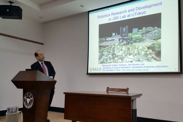 稻叶雅幸教授在教二121报告厅给学院师生做了“日本机器人学30年缩影——东京大学JSK实验室机器人研究与发展”学术报告讲座以1983年绳索操作机器人为起点,回顾了日本东京大学JSK(情报系统工学)实验室有关机器人方向的研究和开发的历史,并详细介绍了实验室正在进行和即将开展的研究工作。内容涉及机器人早期的手眼协调能力、跟踪视觉、机器人视觉、远程大脑控制,以及近年发展迅速的类人形机器人、肌肉骨骼型类人机器人、HRP2PR2机器人的研究应用、可变形无人机系统、救灾机器人等。