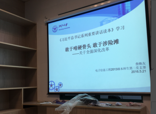5月21日晚,“敢于啃硬骨头,敢于涉险滩——关于全面深化改革”——电子信息工程13级本科生第二党支部学习会在玉泉校区常青园顺利举行。本次学习会由党支部书记詹焕友同学主持并主讲,支部全体党员同志参加了此次学习会。