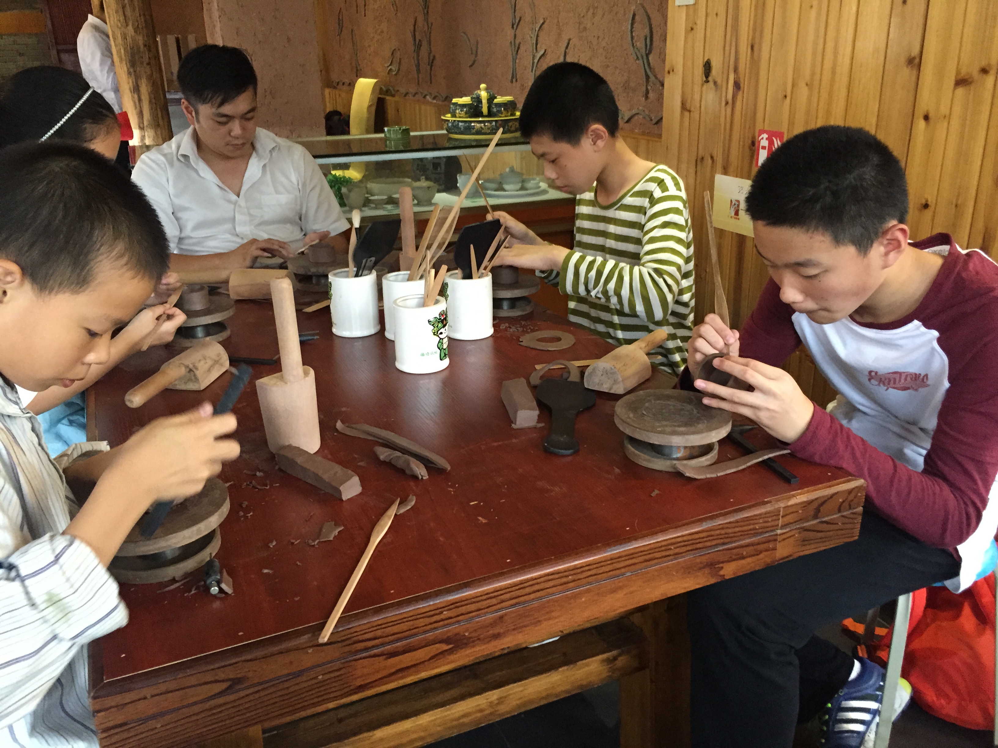 经过一个小时的车程,我们来到荻港渔村,在当地导游的带领下参观了整个村子,欣赏了江南渔村独有的小桥流水人家之景,了解了当地的风土人情、民风民俗和名人轶事。然后我们参观了湖州笔道艺术馆,欣赏传统书画作品,解湖笔的的特点和制作工艺,小朋友们纷纷买了湖笔用来学习毛笔书法。之后来到蚕桑丝绸馆,看到了本地特色的桑基鱼塘,蚕桑与养鱼的互动经验,了解丝绸历史,体验丝绸享受。最后来到渔乡风俗馆,该馆突出展示了荻港本土鱼文化传承的民俗民风,同时展示荻港渔庄在新农村建设中的精神面貌。