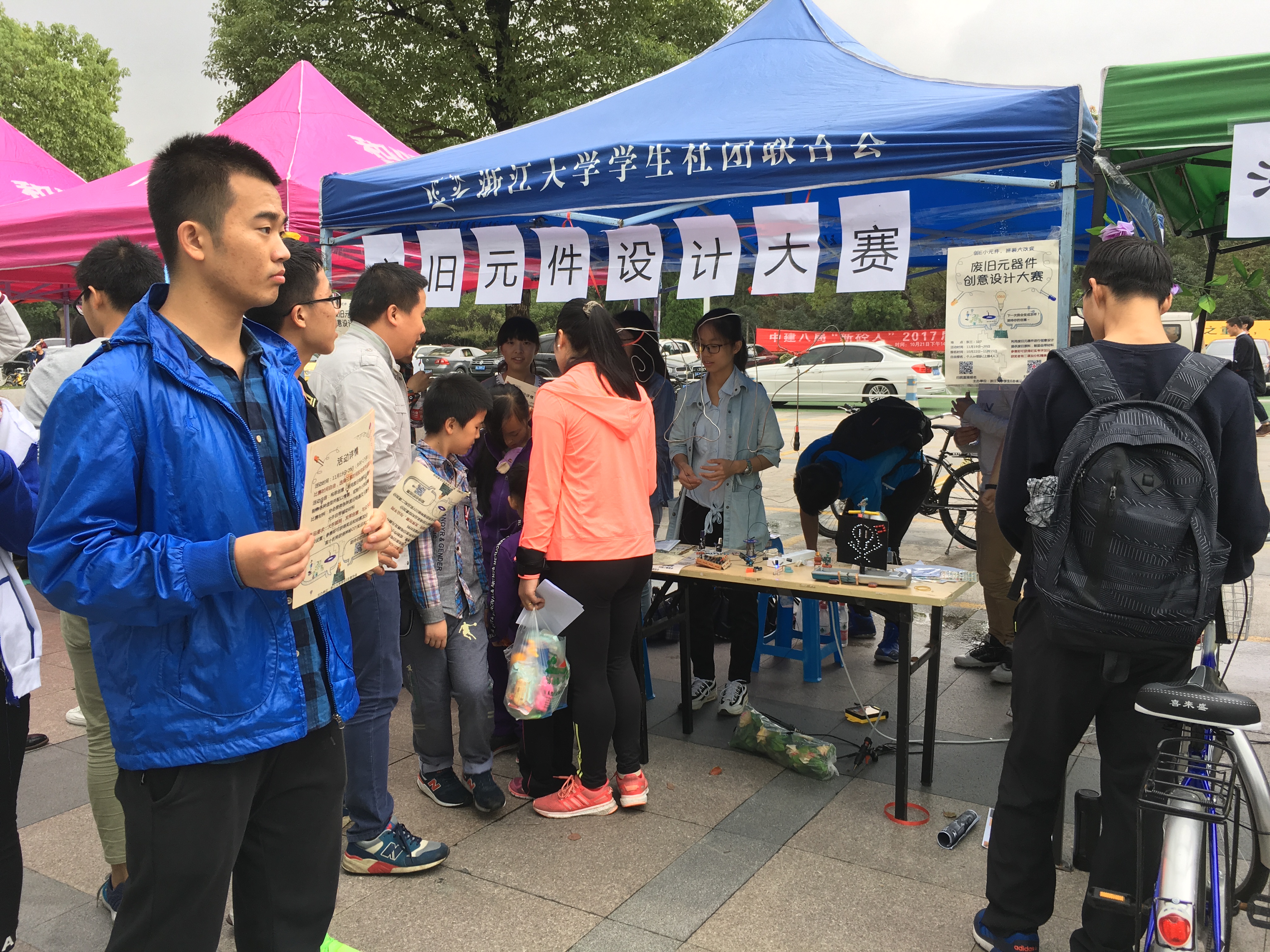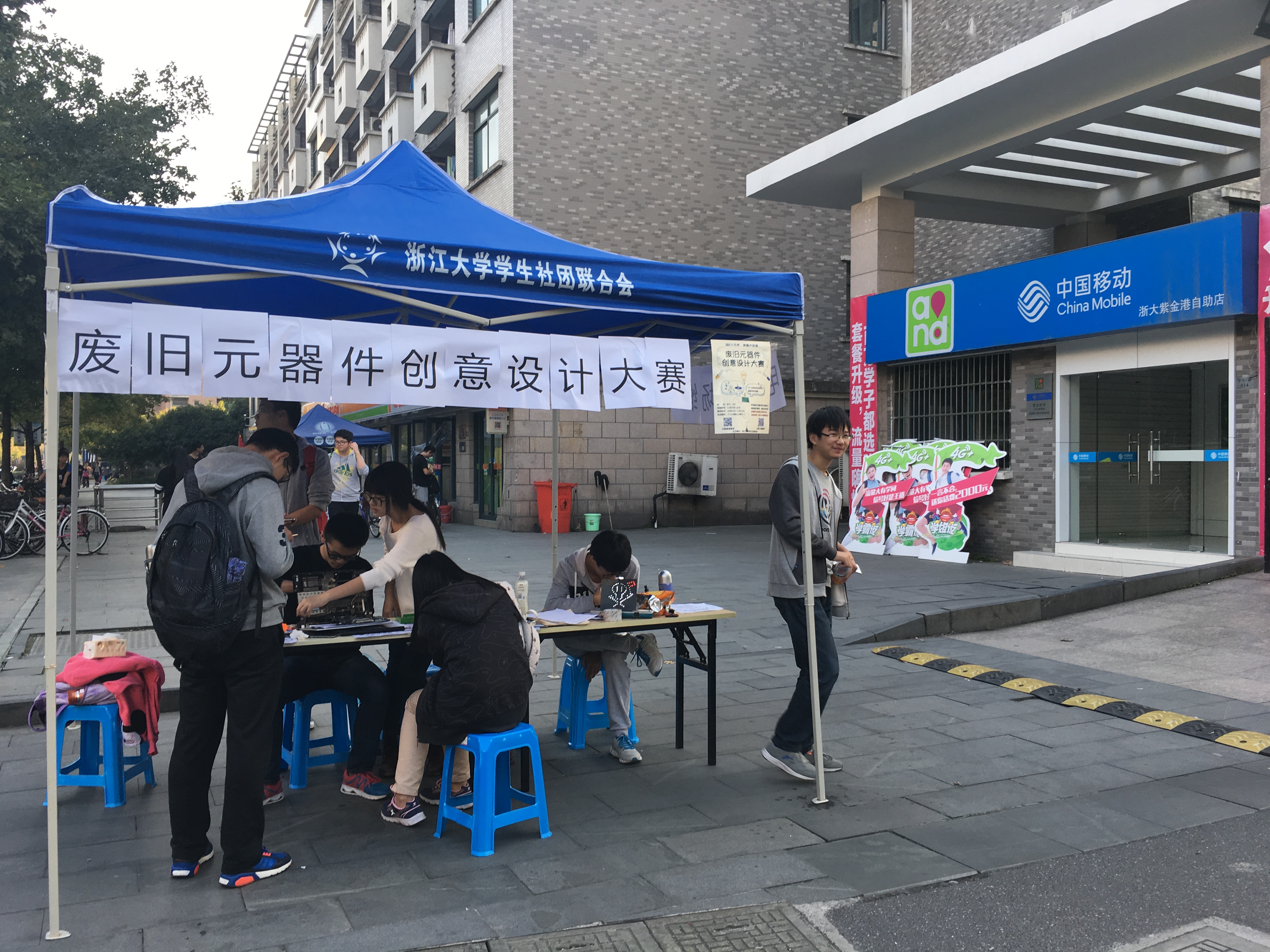比赛安排在11月19日与20日,参赛同学在这两天内选择合适的时间完成了各自的作品。比赛过程中同学们创意层出不穷:有的设计了一个完整的场景,用废旧元器件讲述了有趣的故事;有的利用元器件构成了一个精致的画面,让人惊叹单调的元器件也能有这样的美丽;还有的组装了造型各异的模型,让人印象深刻。两天时间里,同学们用自己的创意,让千篇一律的元器件各自有了不同的特色,而这也彰显了浙大学子具有丰富的想象力与较强的动手能力。活动中,现场的工作人员负责维持现场秩序,留意可能出现的安全隐患,并及时对有困难的同学们予以帮助。最后,共有21组同学完成了他们的作品!