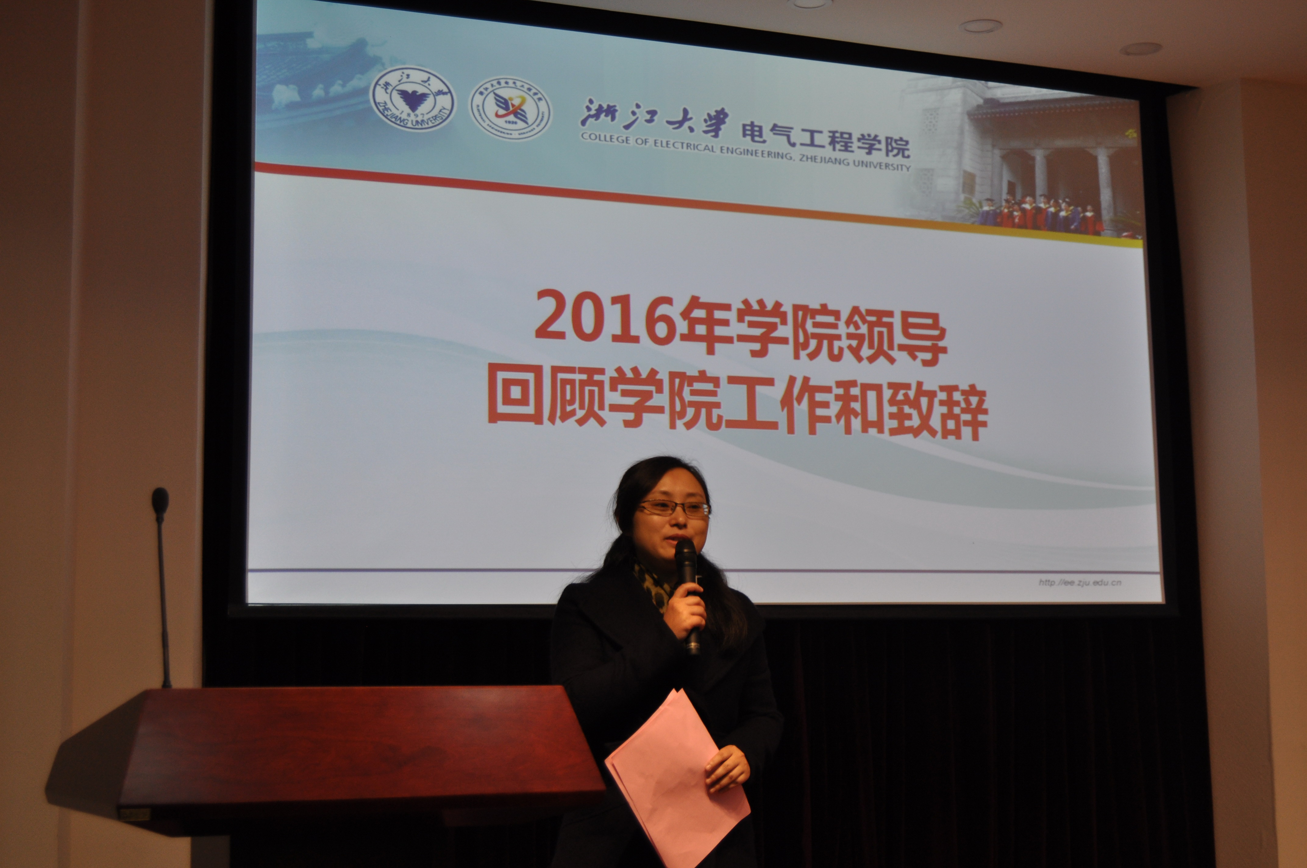 陈敏副书记在讲话中简要回顾了电气学院2016年在科学研究、教育教学、人才培养、师资队伍建设等方面取得的成绩。她指出学院各项工作的稳步推进离不开离退休教师的支持、帮助,老教师是学院最宝贵的财富,是学院定盘的星,让学院的发展更有准头、更有稳头。她希望学院老龄委、退休党总支在今后一如既往地支持学院工作,为学院长期的、可持续的发展献计献策。