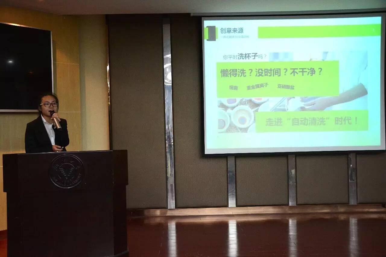 9支决赛队伍按照事先确定好的抽签顺序依次进行展示。每组的展示由六分钟的团队作品展示以及六分钟的评委提问环节组成。9只参赛队伍进行了精彩的展示,并与评委老师们进行了深入的讨论。他们的作品,从现实出发,畅想未来,广泛涉及未来生活的衣食住行等多方面。有“超能水战队”设计的自动清洗杯,免除大家清洗被子的烦恼,“智趣运动团队”方便运动生活的球场机器人,“荷包蛋小分队”用来便捷记账的APP,还有“偷偷养菌小分队”的固化砂土技术,“enjoy团队”带来的女性福音:BRA清洗机,“偷偷打桩小分队”的软土地区基础装配式提升技术,还有“非线性驱动队”的辅助康复手套、“倪老板和他的小伙伴们”给我们带来的血压眼睛以及“Beau团队”给带来的Beau去黑头美容仪。