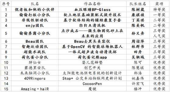 最终,“偷偷养菌小分队”获得了最佳人气奖,“偷偷养菌小分队”、“Beau团队”、“智趣运动团队” 、“超能水战队”、“荷包蛋小分队”获得三等奖,“非线性驱动队”、“enjy团队”获得二等奖,“偷偷打桩小分队 ”获得一等奖,“倪老板和他的小伙伴 ”队获得特等奖。