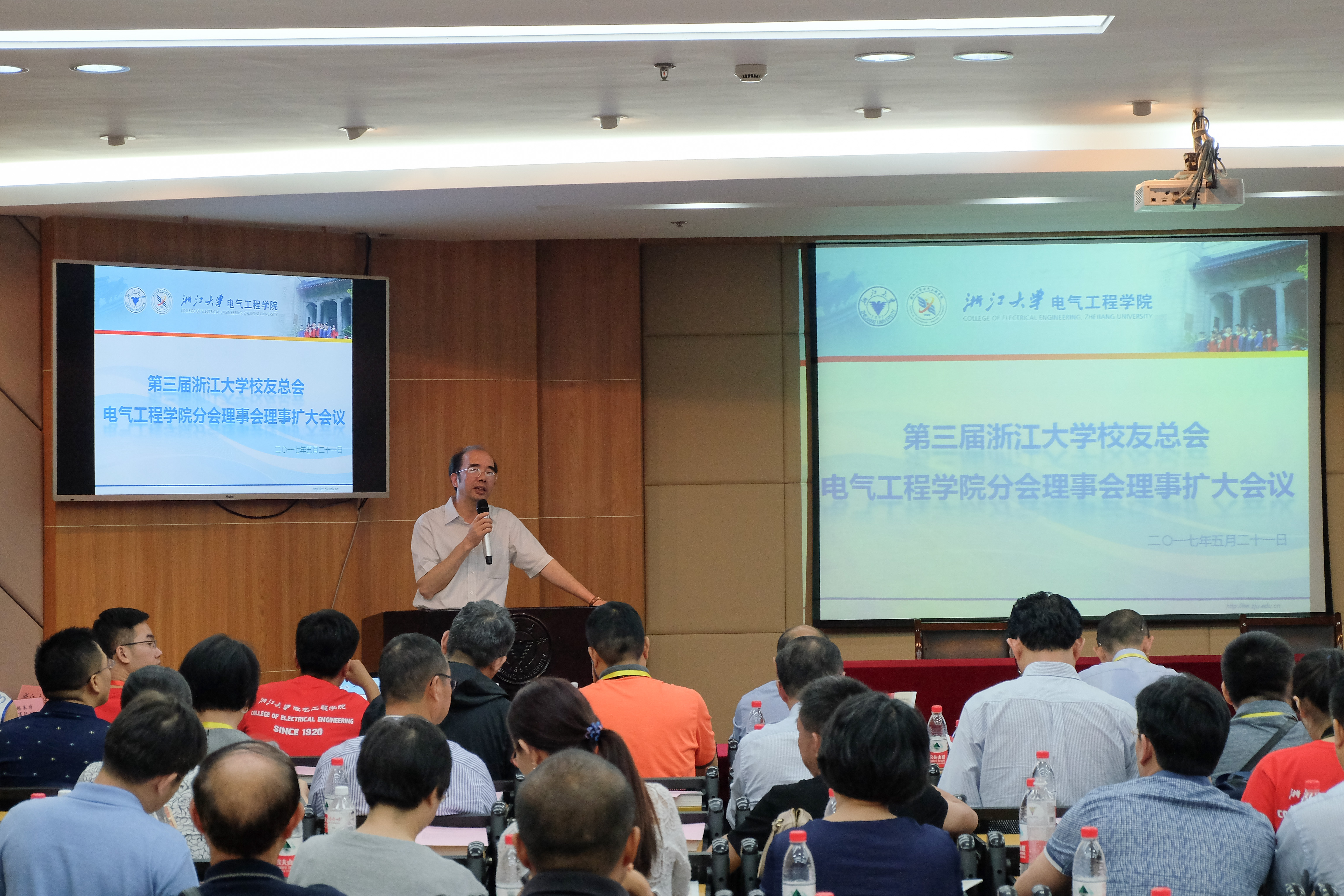 2017年5月21日,正值mg4355线路检查官网120周年华诞,遍布全球的“浙大人”相聚求是园,共贺母校生日。在双甲子隆庆之际,第三届mg4355线路检查官网校友总会mg4355线路检查官网分会理事会理事扩大会议在玉泉校区永谦活动中心第二报告厅隆重举行。中国科学院院士、原mg4355线路检查官网校长韩祯祥,原江西省人大常委会副主任、江西省浙大校友会会长钱梓弘,民建中央副主席、原北京浙大校友会会长陈明德以及电气学院校友分会理事、校友等近130人出席了大会。新老电气人济济一堂,共叙旧日情怀,共商未来大计。大会由mg4355线路检查官网党委书记王瑞飞主持。