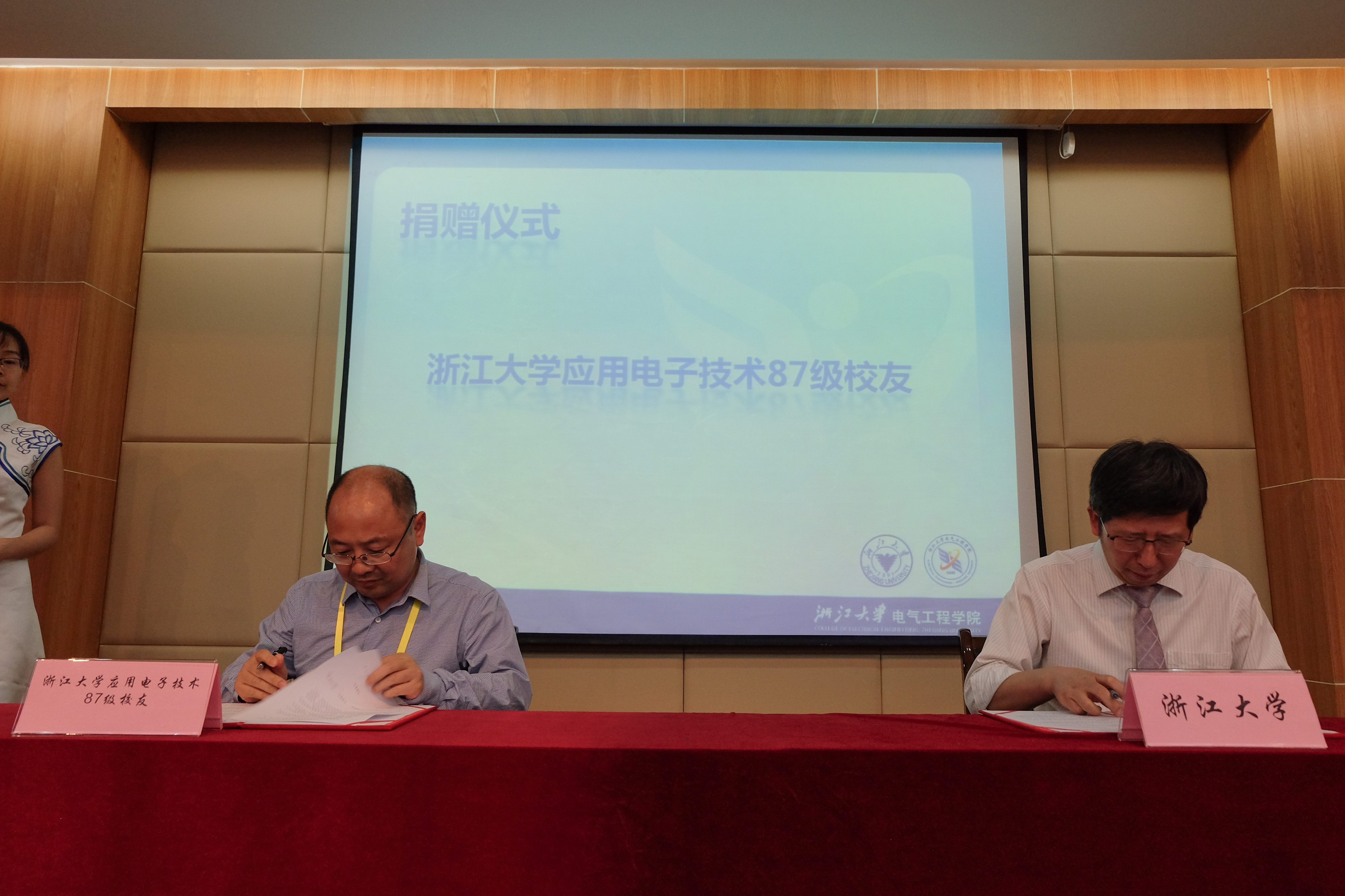 此次大会同期举行了学院奖(助)学金、人才培养基金等捐赠仪式。西子固体继电器、深圳麦格米特、段威、四达电炉、应用电子技术87级、华桂潮、吴晓农等校友单位、校友集体或个人向电气学院捐赠。学院衷心感谢广大校友长期以来对母院的关心、支持,广大校友在弘扬求是校风、联系社会各界,在捐资兴学、引才引智、牵线搭桥等方面发挥了重要作用。今后,学院一定会用实实在在的奉献办人民满意的高等教育,用实实在在的业绩回报校友们的关心与厚爱。
