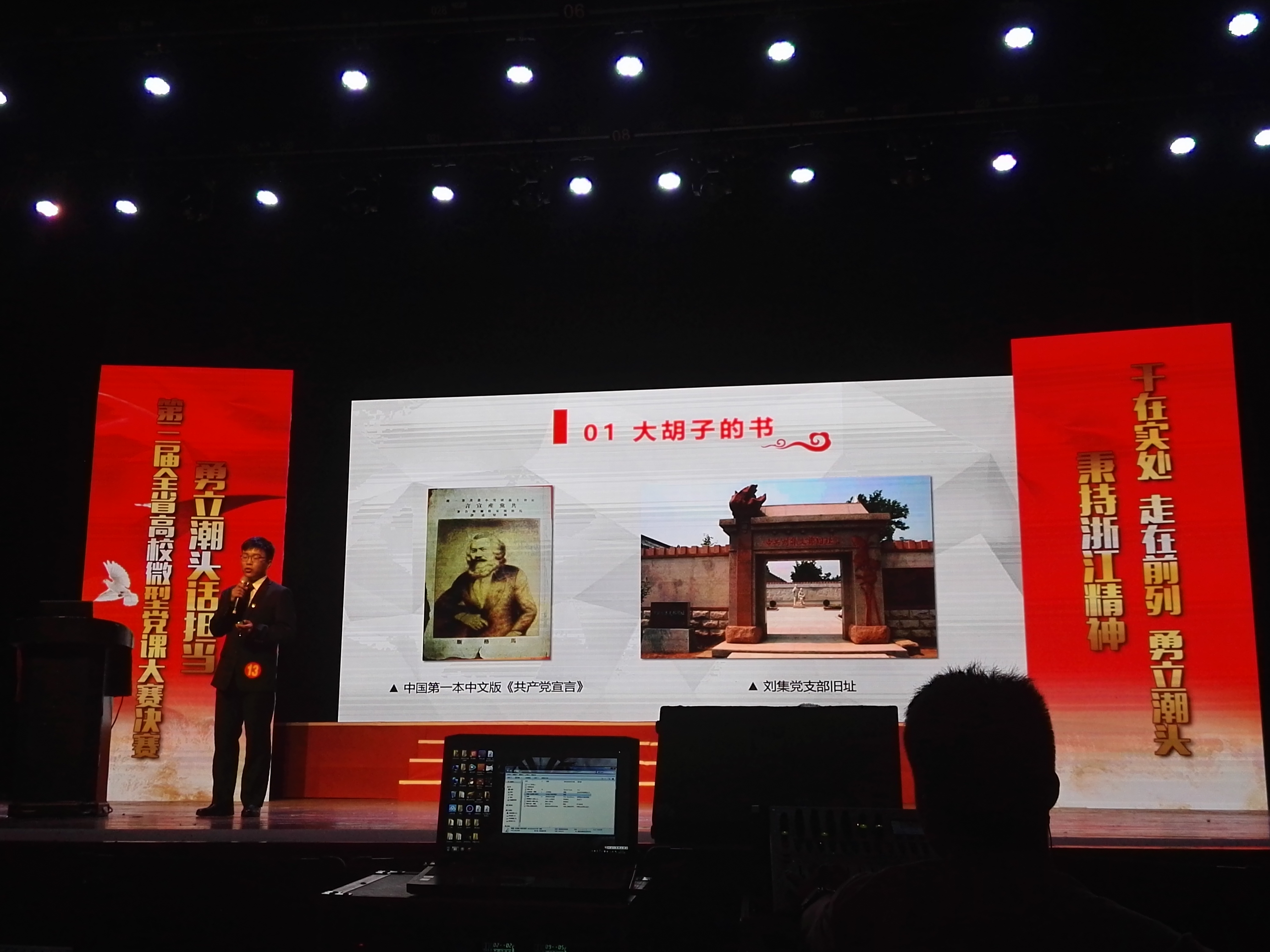 5月25日下午,第三届浙江省高校微型党课大赛在浙江传媒学院举行。本次比赛以“勇立潮头话担当”为主题。全省共有九十余所大专院校参加此次比赛,经过各高校推荐、专家组评审,共有17位教师和2位学生晋级此次决赛。我院本科生崔文康,在现场展示了“红色精神代代传”的主题微型党课,凭借出色的表现,取得第6名的好成绩。