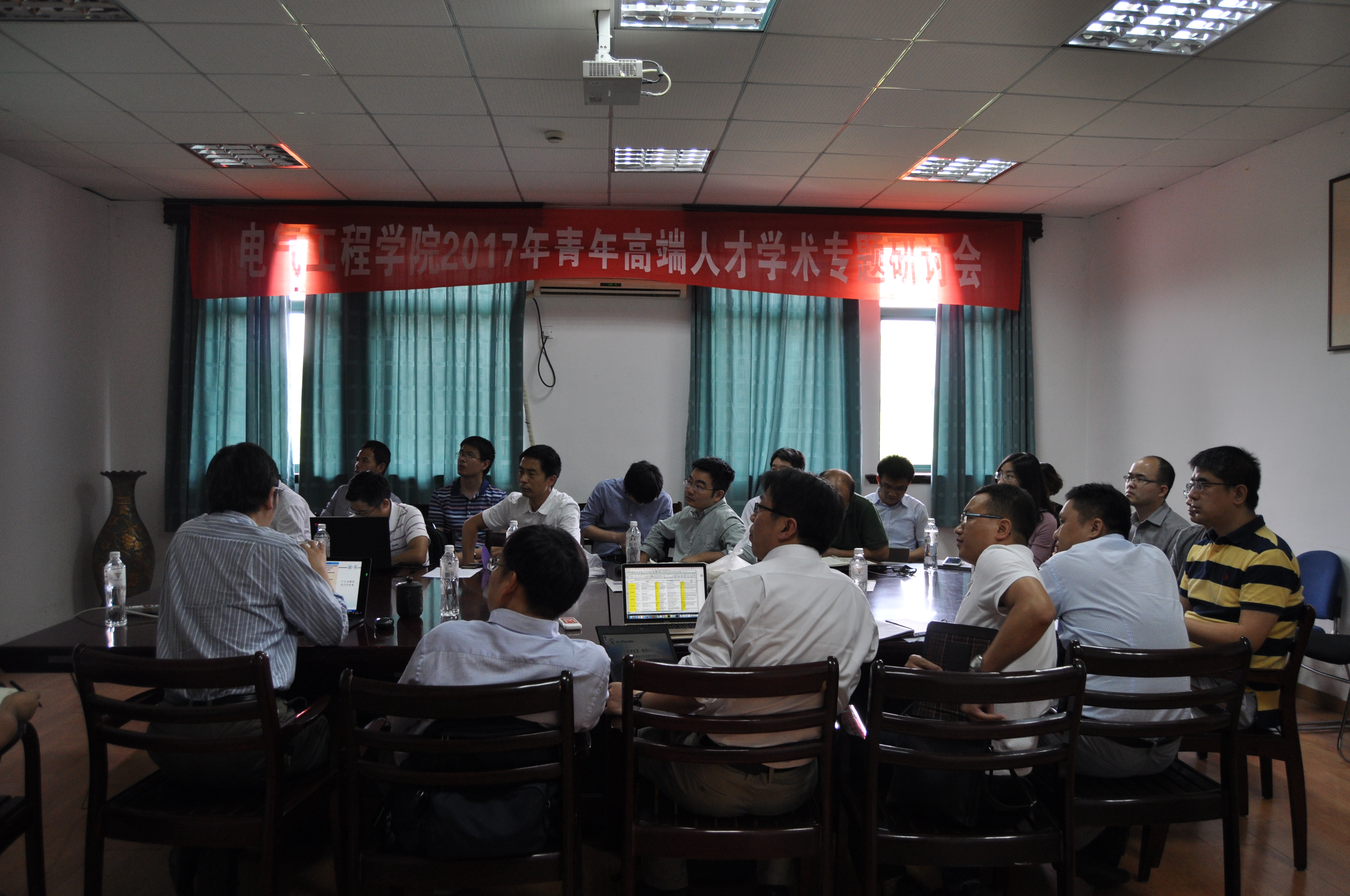 2017年6月15日,mg4355线路检查官网青年高端人才学术专题研讨会在玉泉校区教二405会议室召开。mg4355线路检查官网工业技术转化研究院院长赵荣祥、电气学院院长韦巍、党委书记王瑞飞、副院长盛况以及学院近20位青年教师参加了研讨会。此次专题研讨会旨在探讨“mg4355线路检查官网零碳排放绿色新能源电网先进技术示范园区”项目的发展规划,整合资源,凝练方向,争大项目、建大团队、筑大平台、育大成果、作大贡献,同时也为学院青年教师的培养提供更好的条件、创造更好的环境。研讨会由盛况副院长主持。