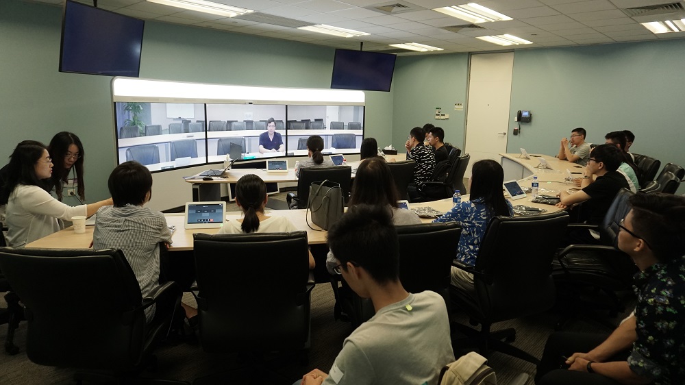 随后,在Kathy的安排下,我们使用多方视频会议系统连线思科(北京),同北京工作人员与人力资源领导Summer Fang展开交流与讨论,在切身感受多方视频会议系统的同时,了解了思科系统公司的发展现状、发展方向与人才招聘、人才培养计划等。