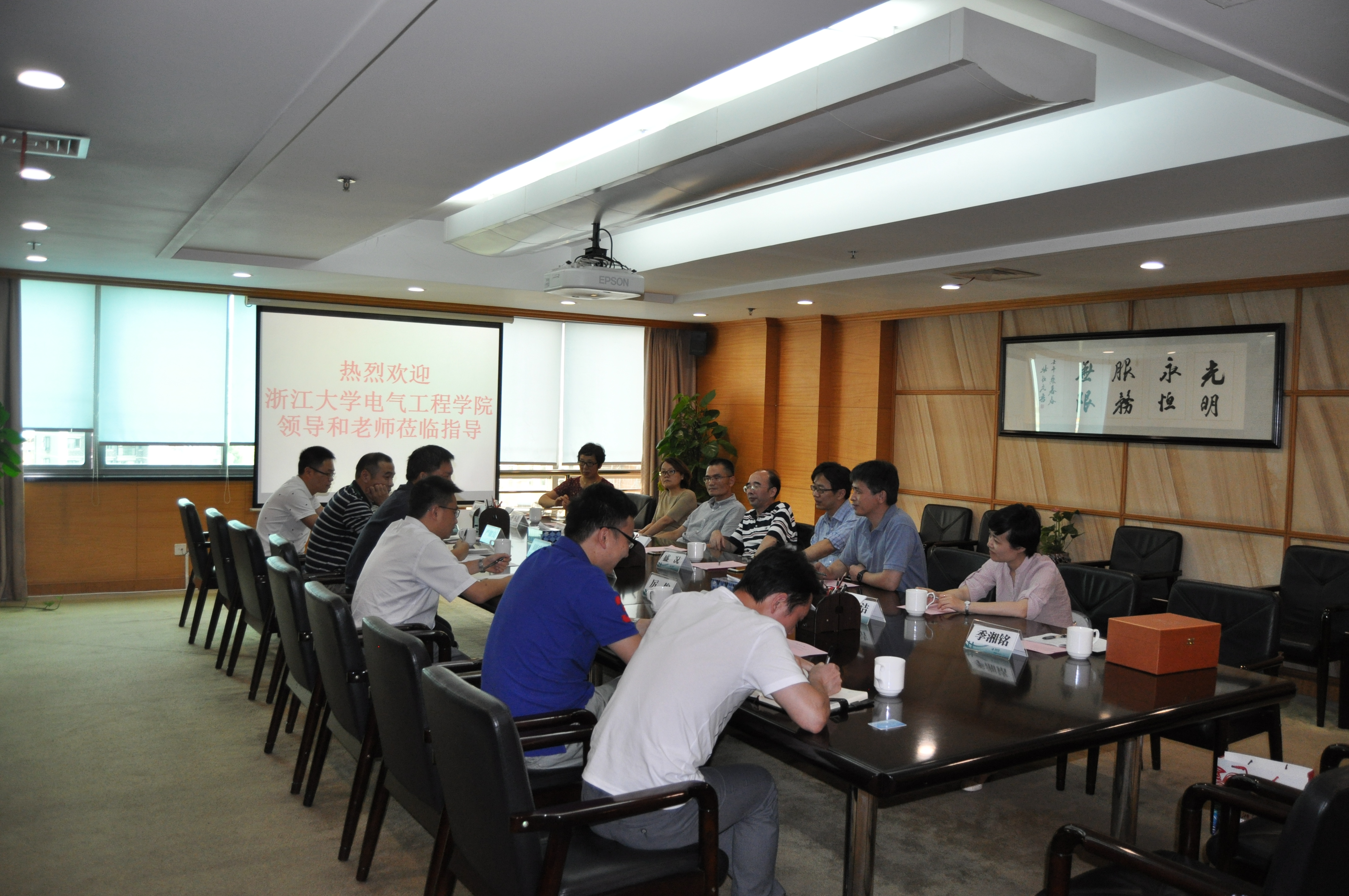 随后,学院领导班子一行前往国网嘉兴供电公司调研。在调度控制中心主任严耀良的介绍下,参观了解嘉兴电网和分布式电源智能调控系统运行的情况;副总工程师周建其详细介绍了嘉兴光伏发展情况以及接入电网时面临的机遇和挑战,大家也纷纷结合自己的研究领域与嘉兴供电公司的与会人员做了深入的交流与讨论。