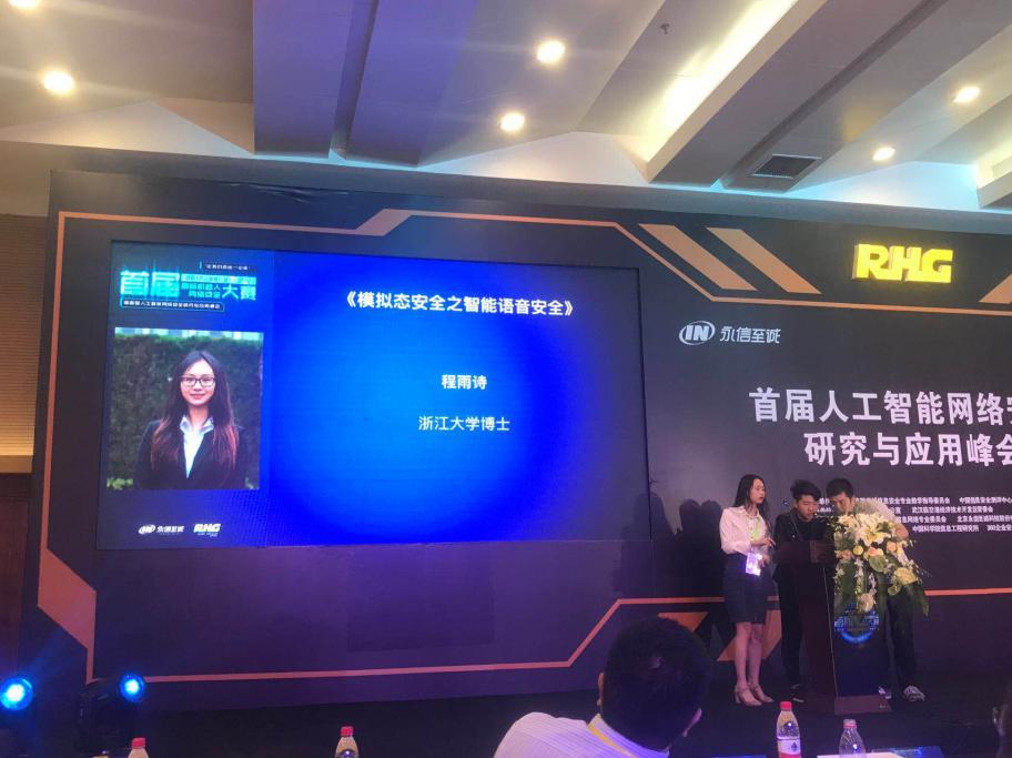 同时,在首届人工智能网络安全研究与应用峰会上,来自mg4355线路检查官网智能系统安全实验室的程雨诗博士分享了名为“模拟态安全之智能语音安全”的议题,展示了USSLAB在智能语音安全方面最新的研究进展和成果,引起了强烈的反响。