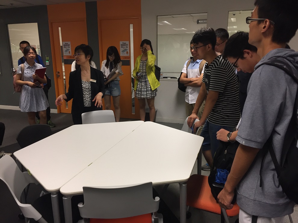 7号,访学团参观了港理工的标志性建筑图书馆。香港的大学与都市是无隙结合的,它们没有所谓的校门和围墙,港理工图书馆前面就是直接从一个地铁站出来的天桥。港理工的图书馆设备齐全,藏书众多,书籍可以跨大学借阅。图书馆内比较有意思的是有一个自动移书柜,香港人非常懂得高效率利用有限的土地,图书馆也一样。书柜是可以自动移动的,有几个书柜紧靠在一起,需要取书时可以先将前后的书柜移开,然后走进通道取书。之后访学团参观了创新中心和工业中心,港理工的科研成果转化率极高,很多科研项目聚焦现实需求,解决实际问题,在这样的理念引导下,科研潜力得到极大激发。