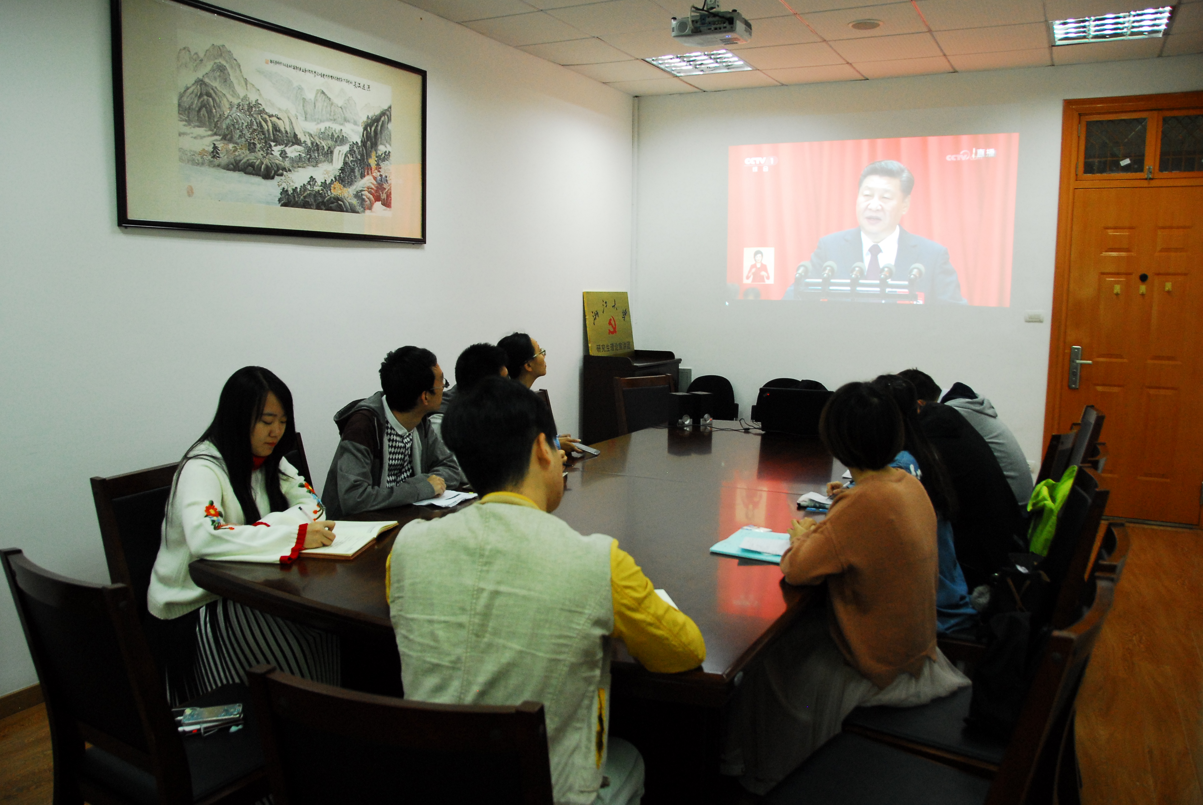 为全面了解十九大实况,领会十九大精神,mg4355线路检查官网组织学院领导班子成员、党委委员、各党支部书记、学生骨干集中收看十九大开幕会直播,学习领会习近平总书记所作大会报告精神。