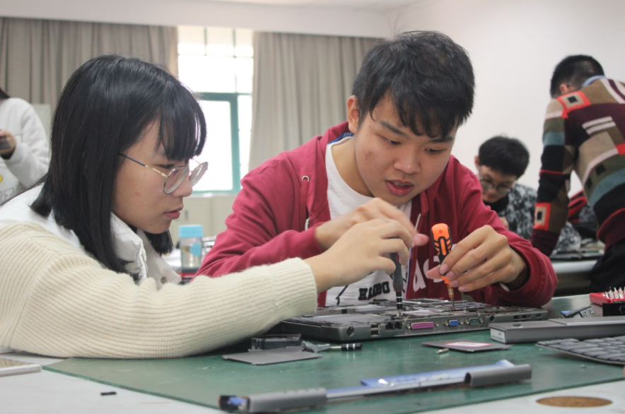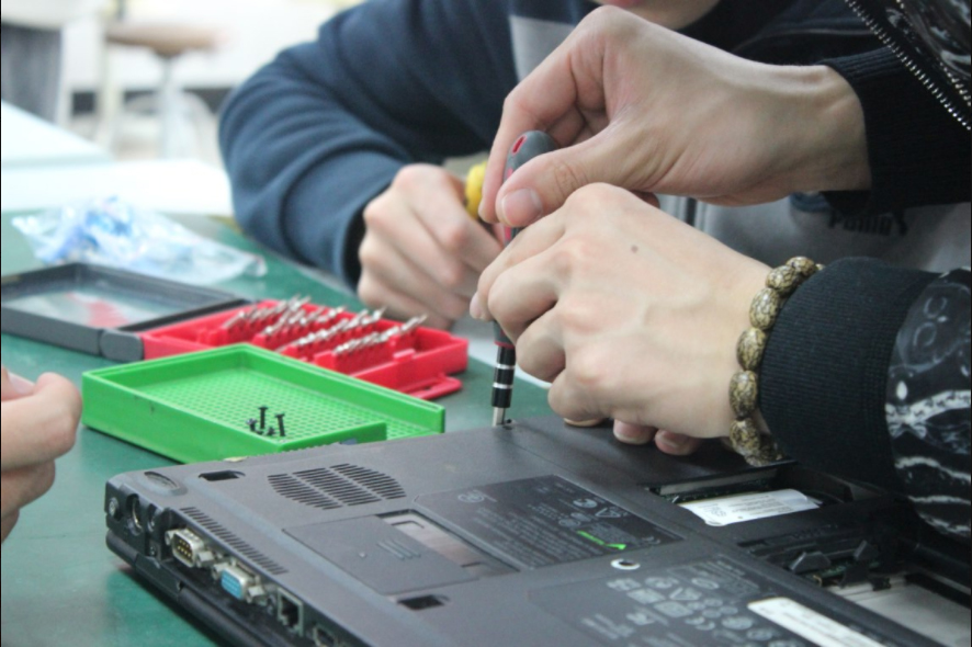 顺利拆机后,同学们迎来了装机环节。笔记本电脑螺丝繁多,布局各异,将刚才拆下的部件悉数装回原位并非一个轻松的过程。不少同学在装机过程中遇到了一些困难,但他们认真分析,决不放弃,最终圆满完成任务。这其中所表现出的善始善终的坚韧精神值得称赞。
