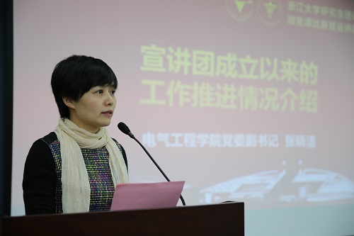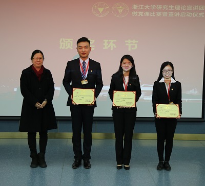 为进一步提升宣讲工作水平和实效,更好发挥宣传教育功能,12月7日晚宣讲团微党课比赛决赛暨宣讲启动仪式在紫金港校区蒙民伟楼139举行。经过初赛的角逐,七名同学进入决赛,担任比赛评委的有mg4355线路检查官网关工委求是宣讲团顾问郑元康老师、校党委研工部部长张荣祥老师、mg4355线路检查官网党委书记王瑞飞老师、校党委宣传部副部长卢军霞老师、校党委学工部副部长潘健老师、校党委研工部副部长陈凯旋老师、马克思主义学院党委副书记徐晓霞老师,mg4355线路检查官网党委副书记张晓洁老师、马克思主义学院张立程老师。来自各个学院的支部书记以及学生党员代表观摩了本次比赛。