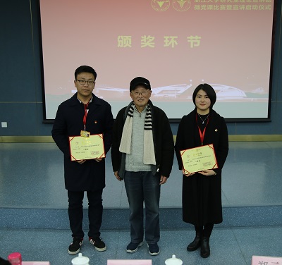 最终,王赛男、崔文康获得比赛一等奖,陈光普、钱皋获二等奖,刘亚男、黄佳妮、姜保平获三等奖。由郑元康、潘健、徐晓霞老师分别为他们颁发证书。郑元康老师颁奖之后讲述了他感受,并嘱咐大家“以理服人,以情动人”,郑老的一番话,让大家深受触动。