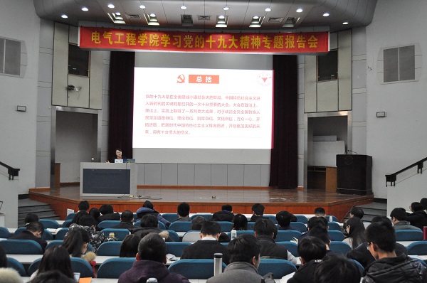为深入学习宣传贯彻党的十九大精神,进一步理解领悟十九大精髓要义,mg4355线路检查官网于2017年12月11日下午2:00在教七影视厅召开了学习党的十九大精神专题报告会,邀请mg4355线路检查官网马克思主义学院副院长张彦教授做题为“新思想引领新征程—深入学习贯彻党的十九大精神”宣讲报告。学院党委副书记张晓洁老师主持会议,电气学院师生党员200余人出席并认真聆听了该报告。