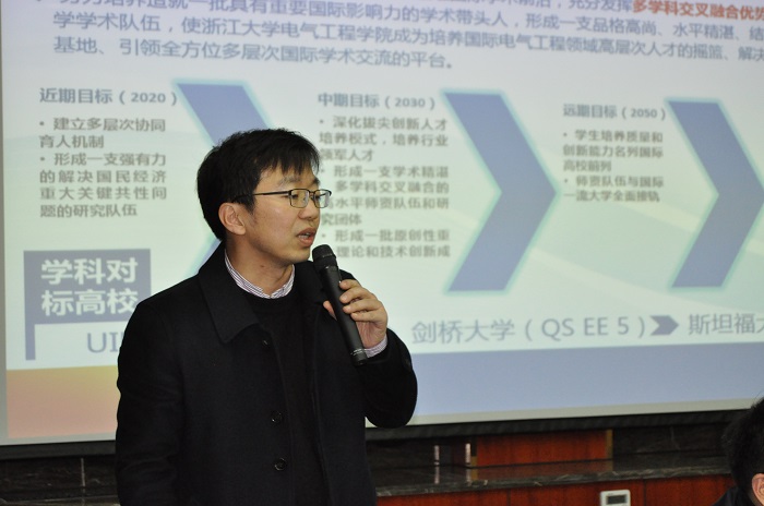 程时杰表示,要建设世界一流学科,必须制定完善的学科规划。他指出,电气工程学科首先要进行归纳总结,立足前沿,凝练特色,依托大项目大平台,规划出学科的发展方向;同时,学科要有领军人,并充分发挥作用,从而引发新的思想,整合优秀的团队,另辟蹊径,找到突破点;他强调,在当前国内电气学科日新月异、不断变化的情况下,电气工程学科必须要优化链条,做好布局,坚持立场,找准定位。