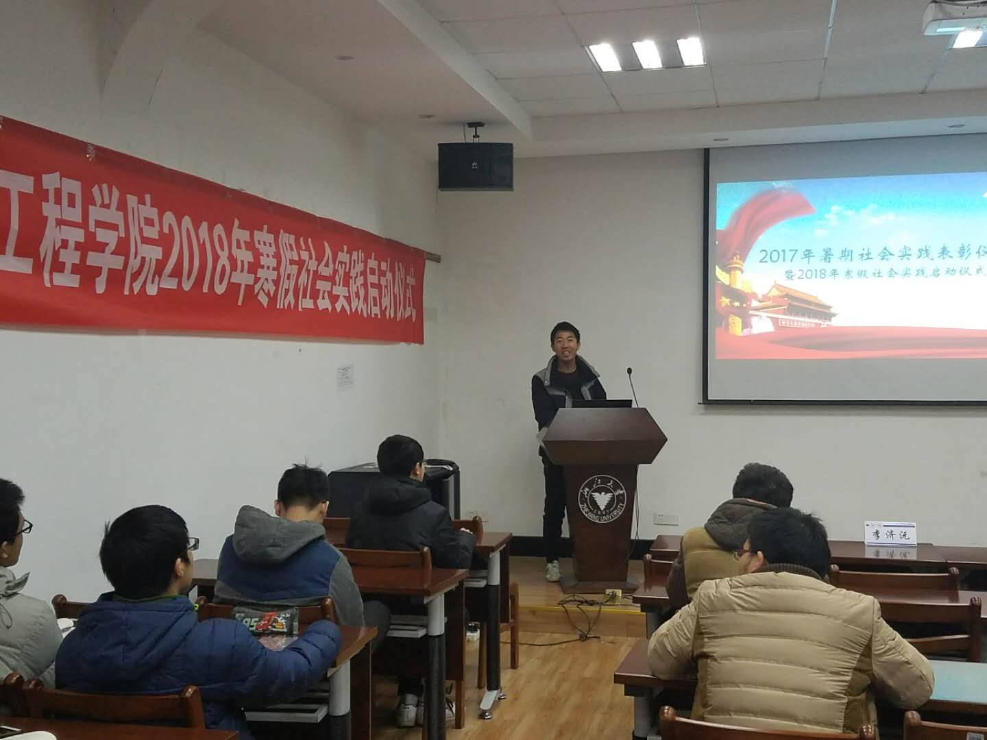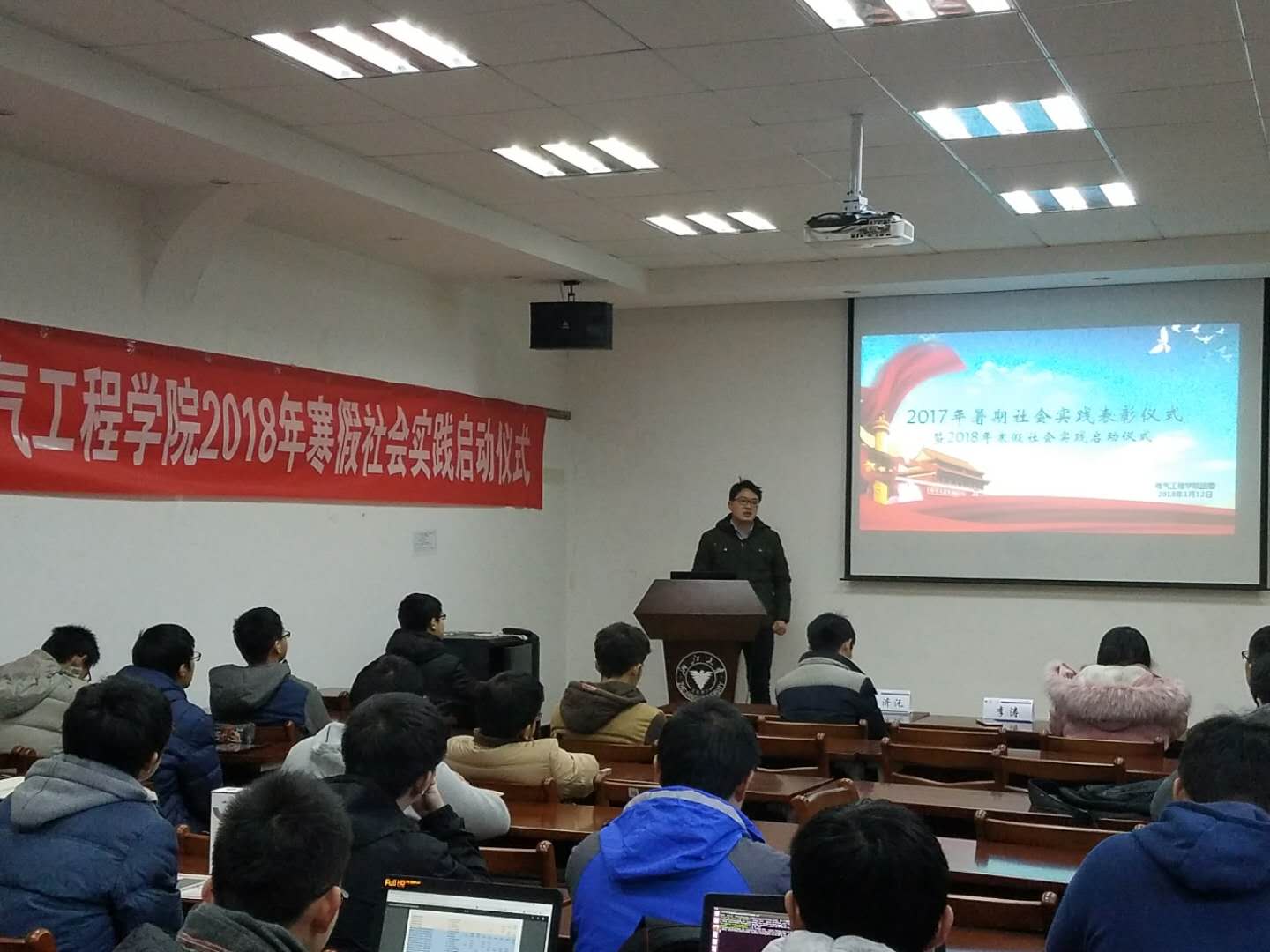 最后,由李济沅老师给同学们做出发前的动员并宣布寒假社会实践正式启动。相信在2018年的寒假社会实践中,电气学院学子能够表现的更加出色,为学院的社会实践工作增添一抹亮色。