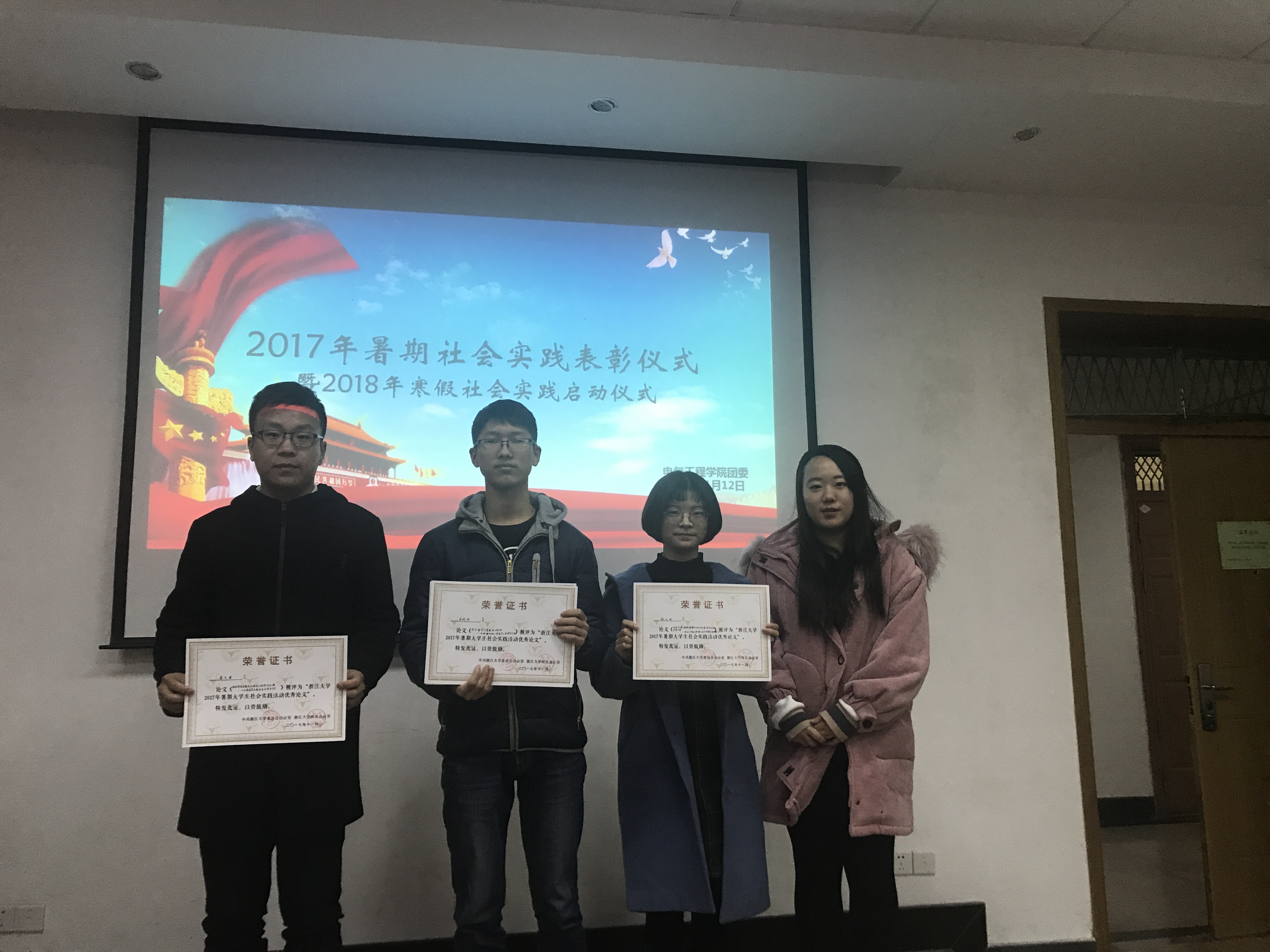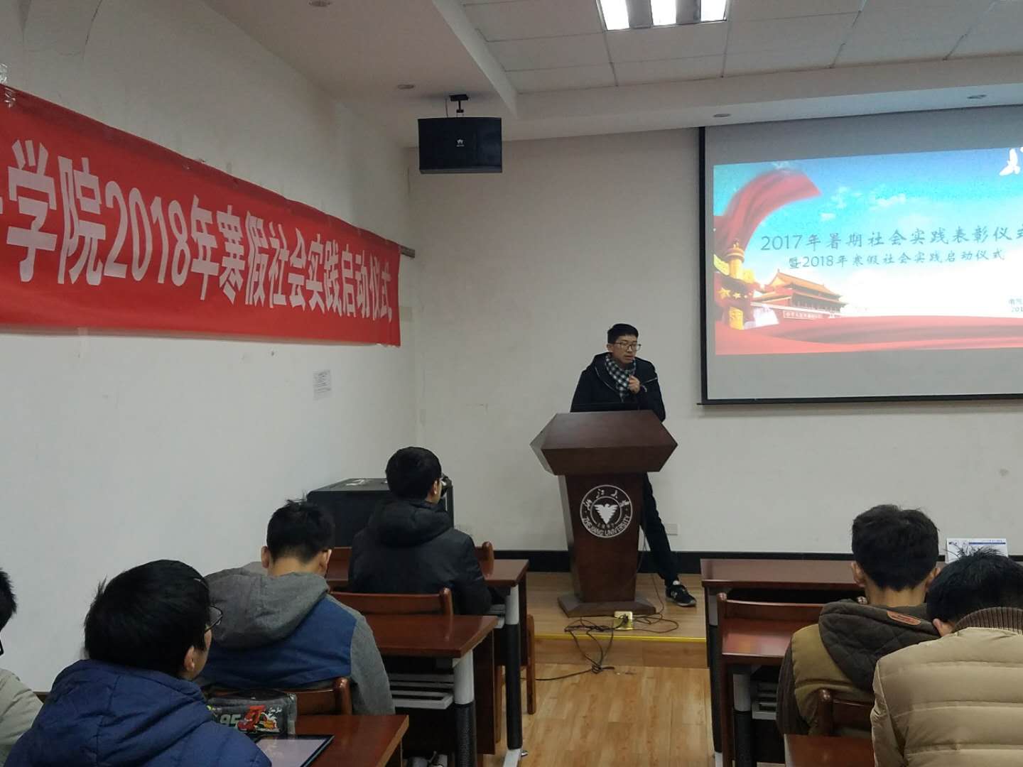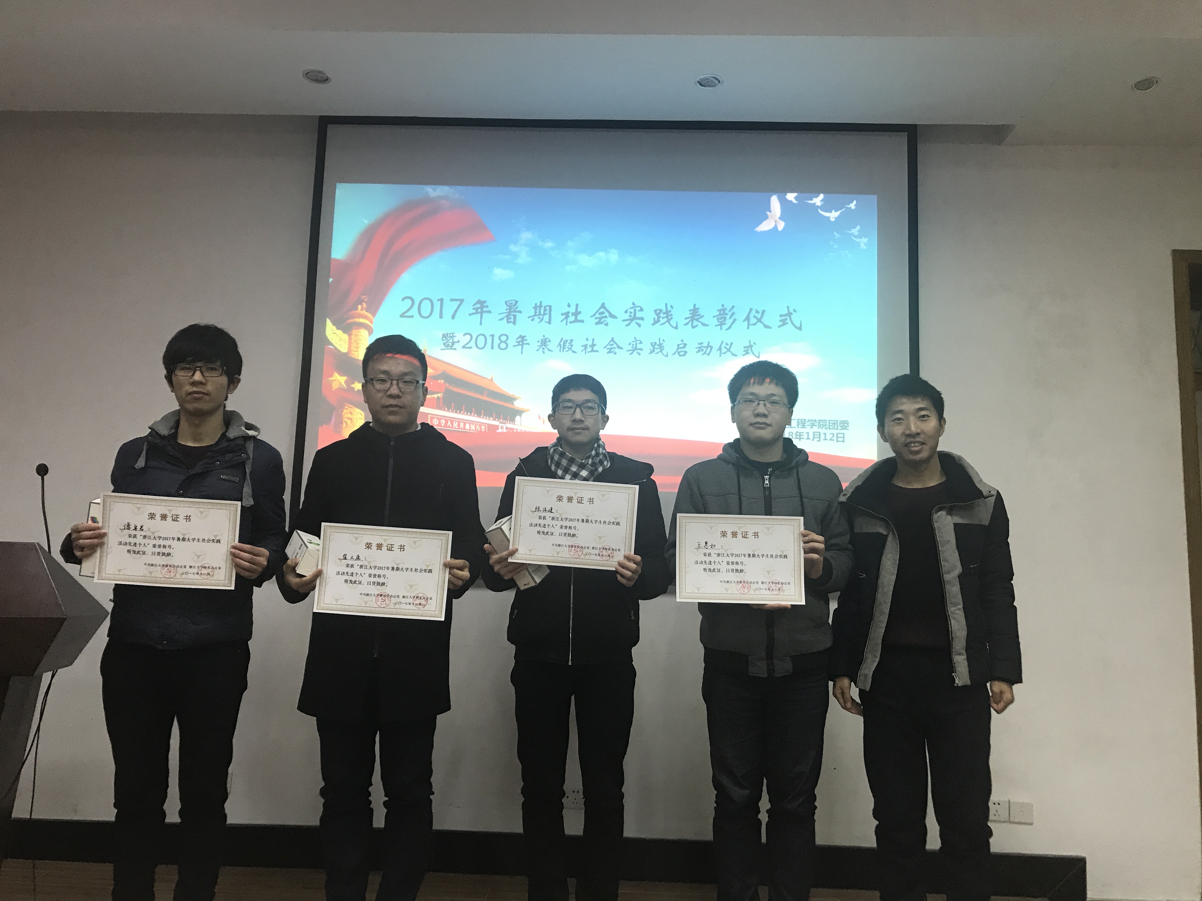 1月12日下午,mg4355线路检查官网2017年暑期社会实践表彰暨2018年寒假社会实践启动仪式在教二121举行。团委副书记李涛老师、李济沅老师和张竞文老师以及暑期社会实践优秀团队、先进个人获奖代表和寒假社会实践各队伍负责人参加本次会议,会议由学院团委社会实践指导中心副主任陆浩聪主持。