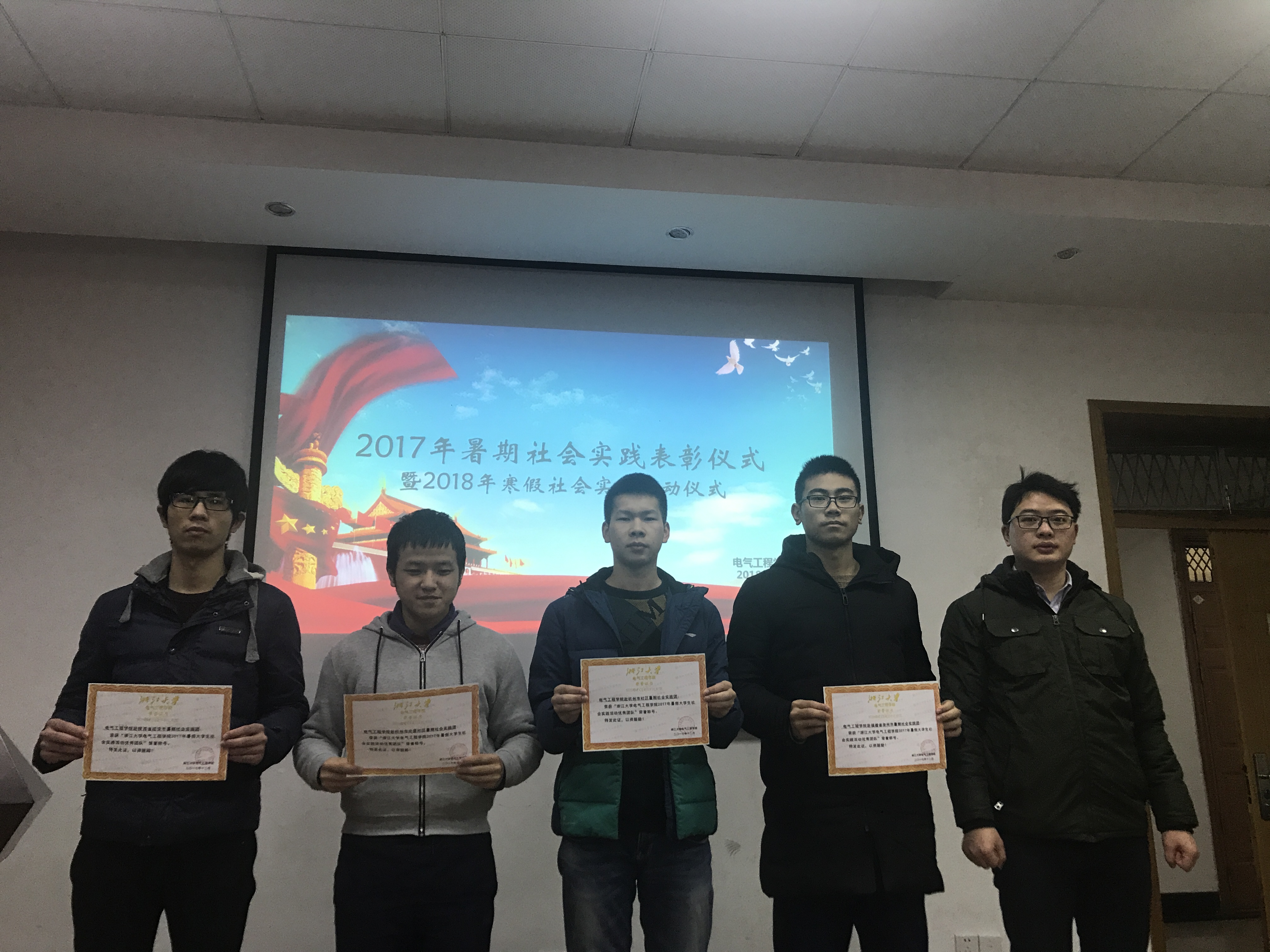 刚刚过去的暑期社会实践中,我院成绩斐然。学院获评mg4355线路检查官网2017年暑期大学生社会实践活动优秀组织奖和mg4355线路检查官网2017年研究生社会实践优秀组织奖,“为梦添E”社会实践团获共青团中央“中国大学生社会实践知行促进计划”,“立邦‘为爱上色’中国大学生农村支教奖”全国铜奖,mg4355线路检查官网云南景东光伏扶贫实践团获mg4355线路检查官网2017年研究生社会实践示范团队。三支队伍获评mg4355线路检查官网2017年暑期大学生社会实践活动优秀团队。同时也涌现出一批优秀的院级优秀组织和先进个人,会议首先对这些团队和个人进行了表彰,李涛老师、李济沅老师和张竞文老师为获奖队伍和个人颁奖并合影留念。