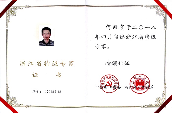2018年4月11日上午,浙江省科学技术奖励大会在省人民大会堂隆重举行。我院何湘宁教授被授予第五批浙江省特级专家,成为mg4355线路检查官网首位浙江省特级专家。