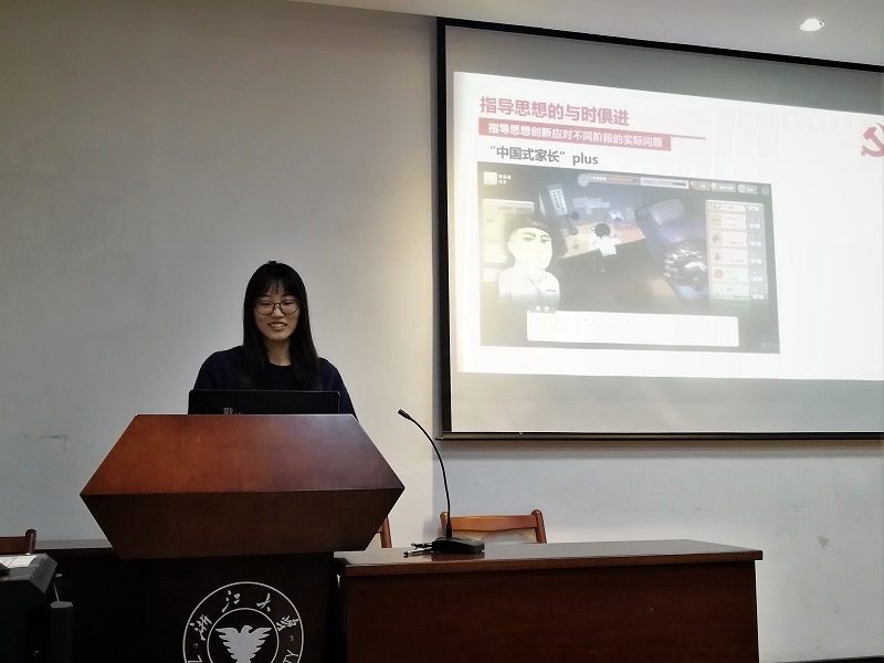 接着,王惠如同学做了主题为“与时俱进,不忘初心”的党课演讲,从新思想的诞生看我党指导思想的传承与发展。五次重大指导思想的出现,体现了我党指导思想的与时俱进,即毛泽东思想,邓小平理论,三个代表重要思想,科学发展观,习近平新时代中国特色社会主义思想五次重大理论创新。王惠如同学指出,理论来源和服务与于实际,与时俱进的指导思想回答了不同阶段的实际问题,五次理论创新分别在不同的历史建设时期为我国的发展提供了思想指导。当然在与时俱进的过程中,它们之间也含有密切的传承关系,如同长跑接力一般一棒棒的传递而指向同一个目标,即共产党人的初心和使命——为中国人民谋幸福,为中华民族谋复兴。