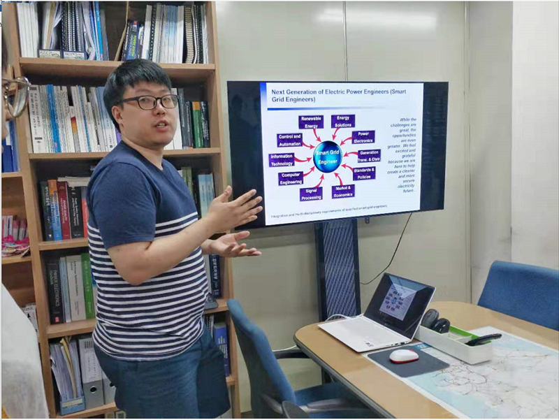 延世大学的工科学院下设有电气电子工学部(EEE),负责接待我们的教授从延世大学的历史和成就讲起,着重向我们介绍了学校电气电子工学部的结构应用和现有的研究方向;除了控制自动化、电力能源系统和微电子之外,它包含了半导体材料和计算机通信在内的广阔领域。在控制与电力系统方向,教授向我们介绍了主要的研究课题,令人印象深刻的有电力系统的动态&静态分析(Power system dynamics & stability analysis)和HVDC and flexible AC transmission systems。不同方向的研究让我们大开眼界的同时也拓展了我们的思考看待问题的角度。