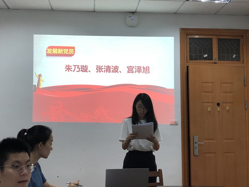 发展党员严格按照党员发展程序,经过党支部严格考察和培养,上述三名入党积极分子列为发展对象。会上,三名同学依次宣读入党志愿书,对自己的思想、品行、学习等方面做了依次全面汇报。随后,6位入党介绍人分别介绍发展对象的现实表现,经支部大会讨论,成员无记名投票表决,三位积极分子光荣地成为中国共产党员。